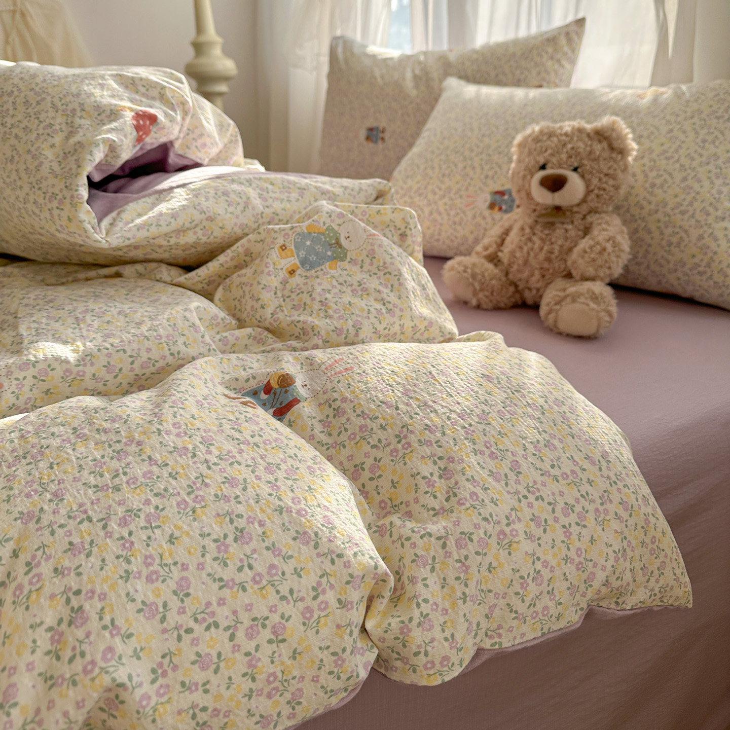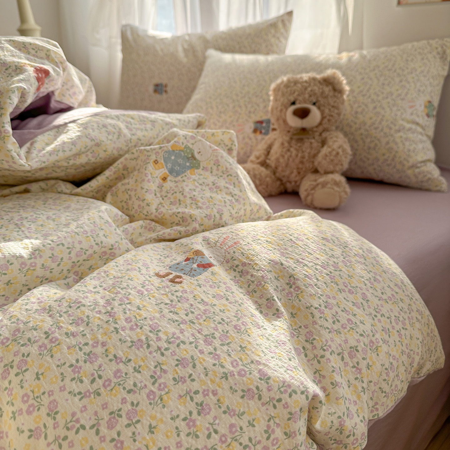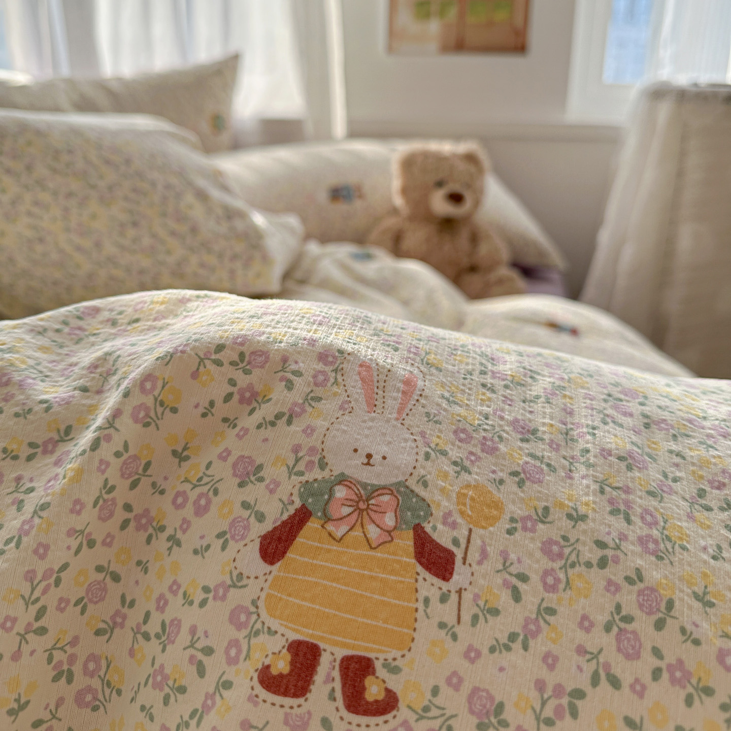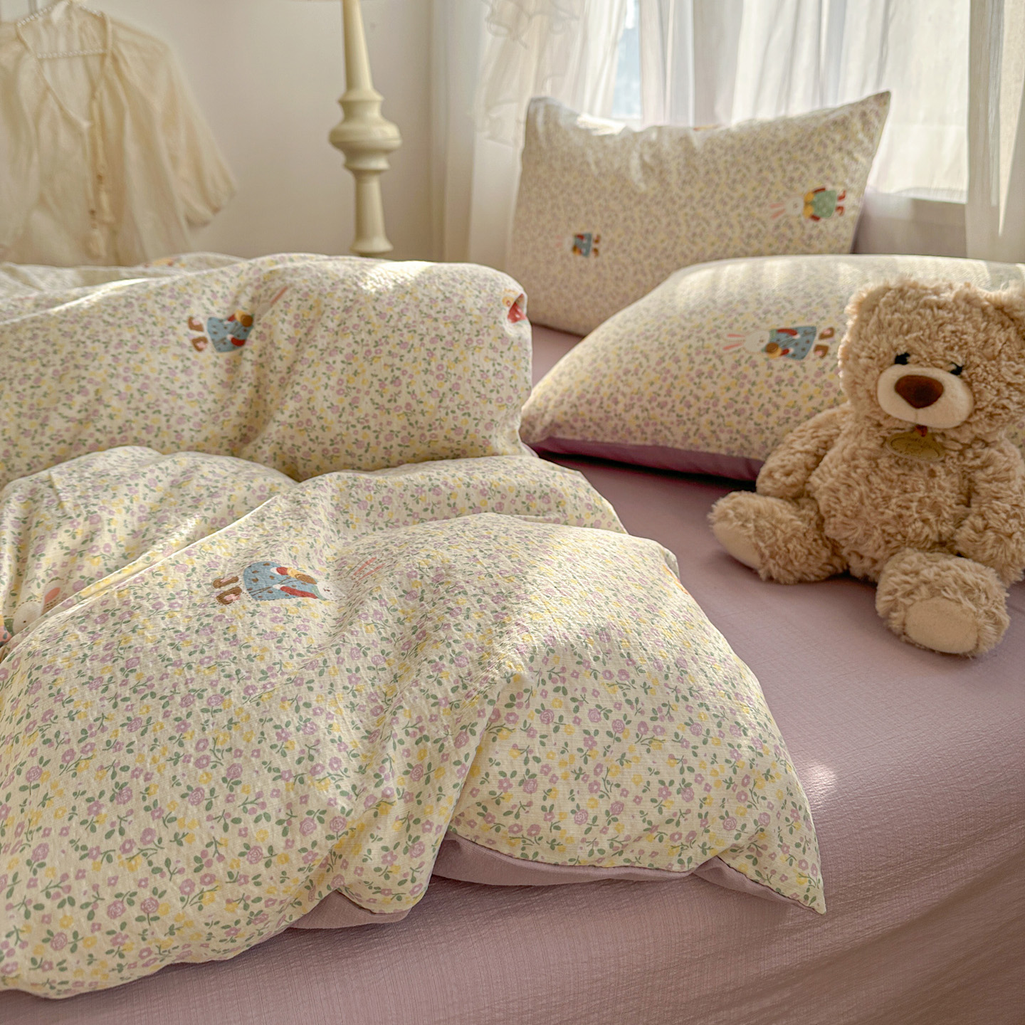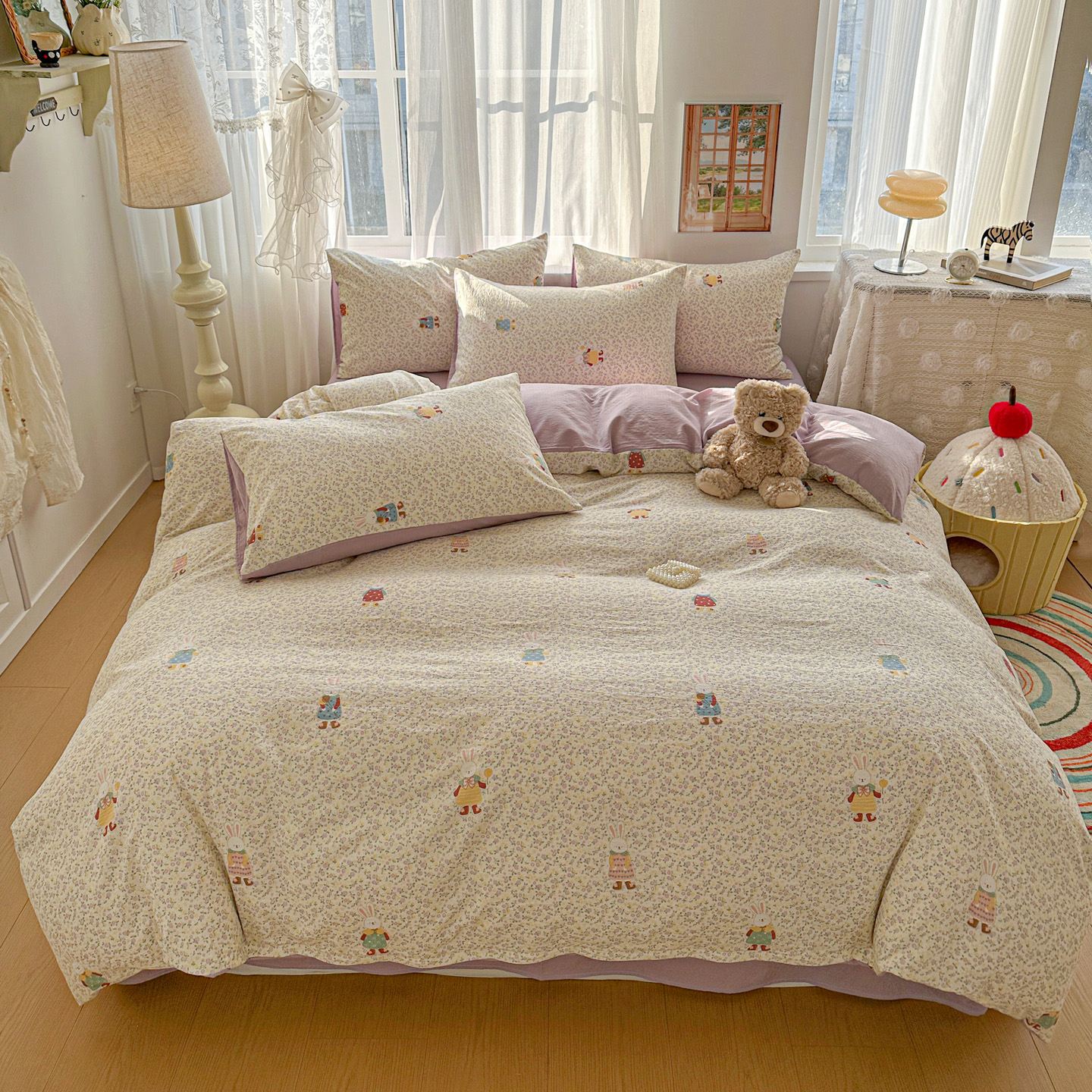 当前位置: 91家纺网 > 商品网购 > 床品套件 > 四件套 > 其它四件套 > 赫然家纺 2026春夏新款云感皱皱纱四件套套件 花海兔
