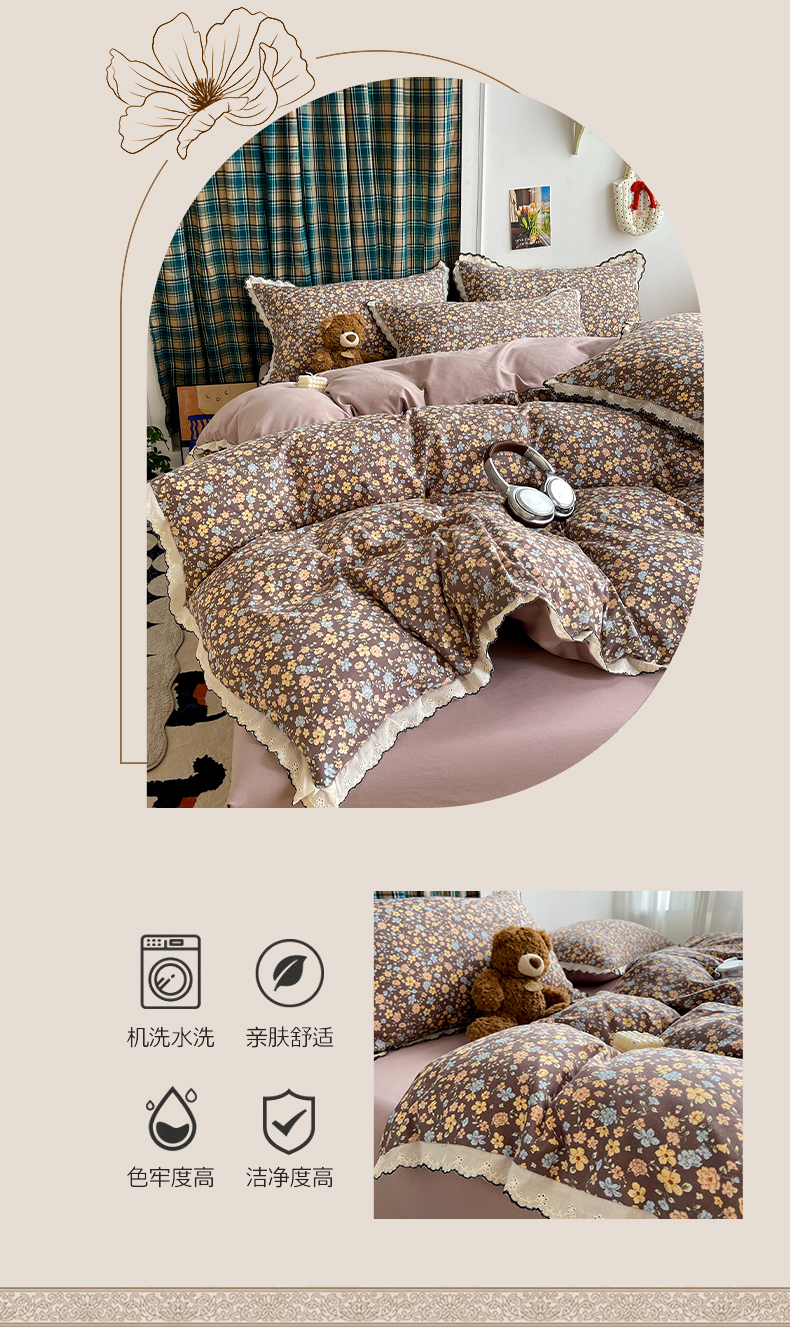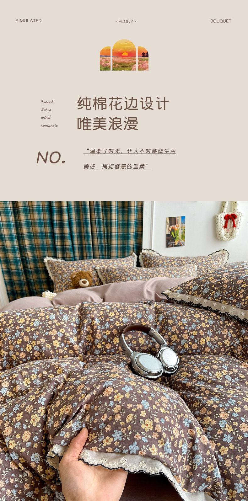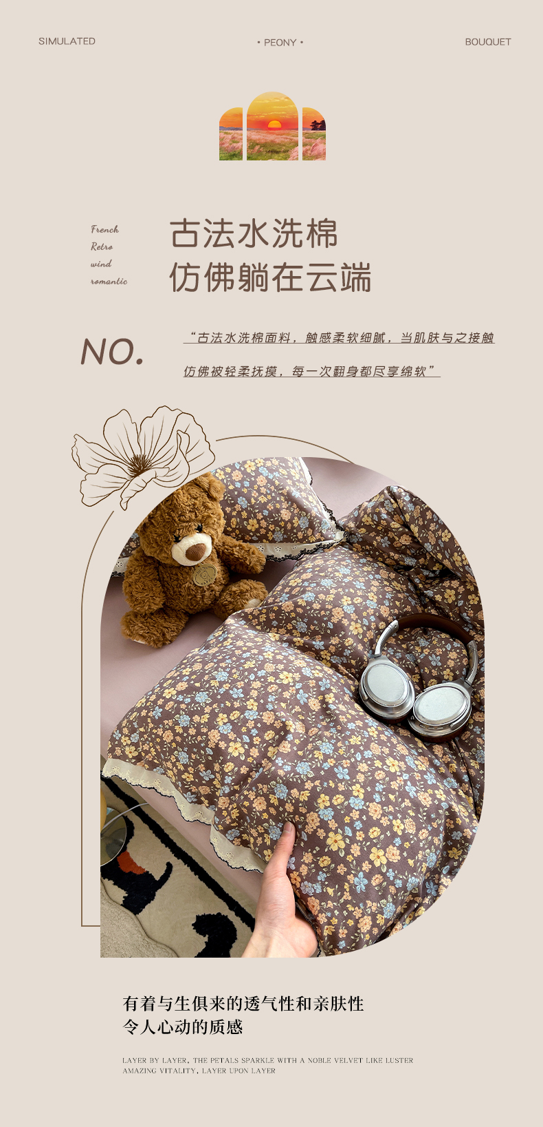 当前位置: 91家纺网 > 商品网购 > 床品套件 > 四件套 > 水洗棉四件套 > 金梦拉家纺 2026春夏新款古法水洗棉花边系列四件套 花边-一路繁花