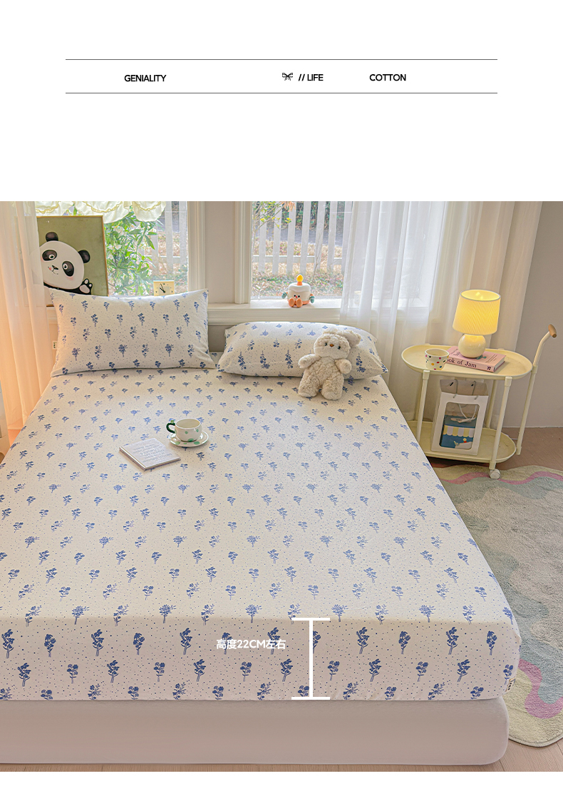 (总)莱登卡奴 2026新款A类100%全棉纯棉老粗布单床笠系列,艾伦,冰淇淋,花田初夏蓝,腊肠犬,蓝恐龙,菱格米,莫奈灰,奶酪,泡芙兰,企鹅,旺仔腊肠狗,醒春,丫丫,云初,枝叶,组合图 仅供参考