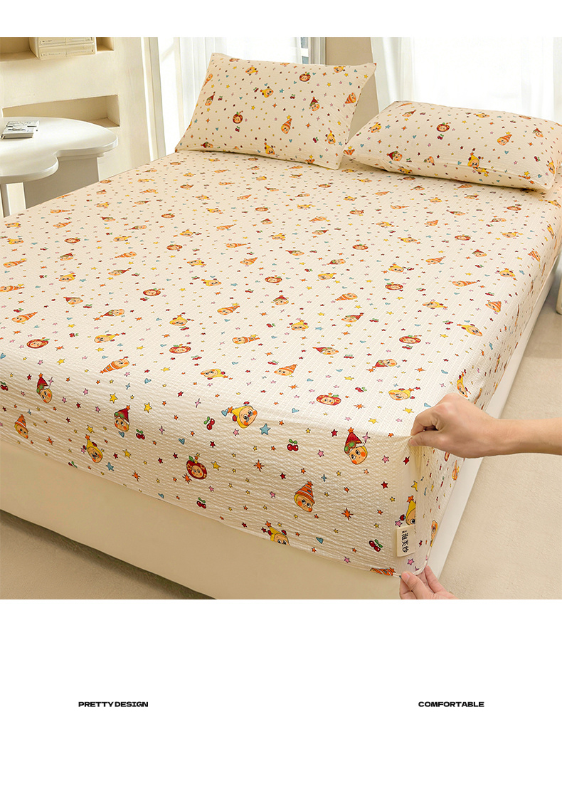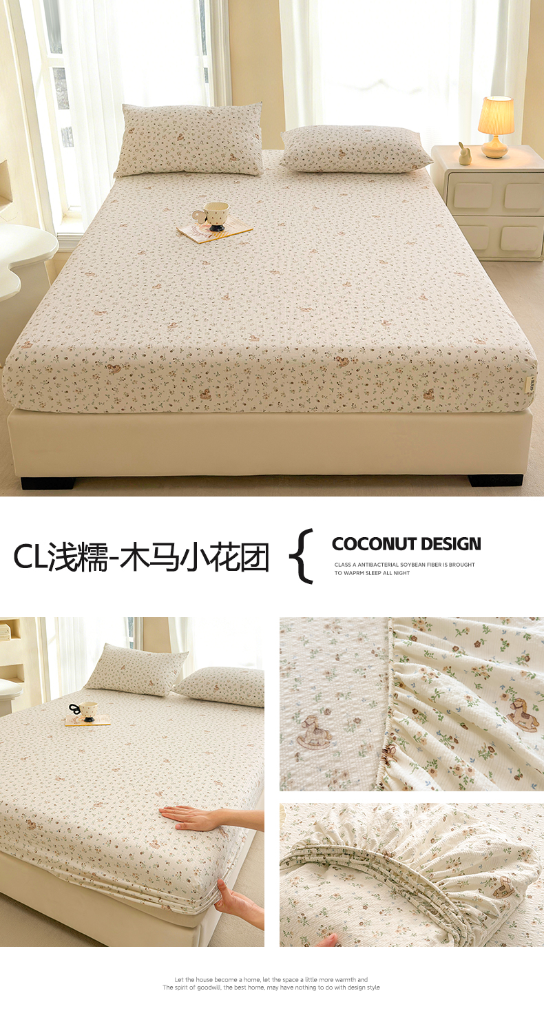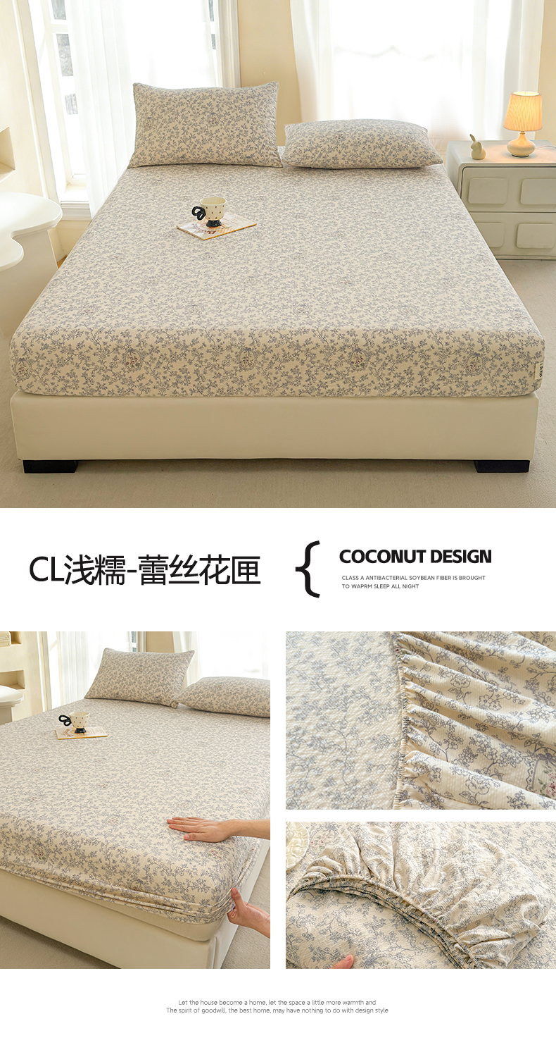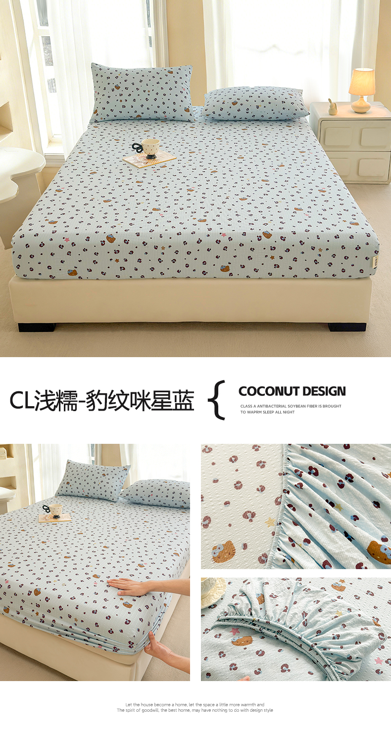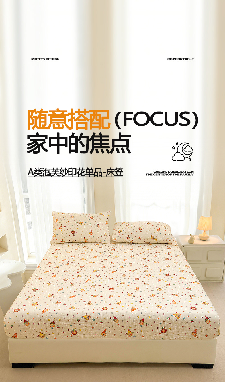 贝扬思家纺 2026新款高克重泡芙纱印花款单床笠床笠单件-浅糯 CL浅糯-旧街星星