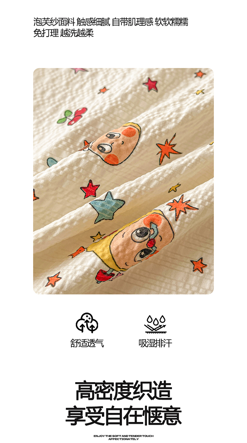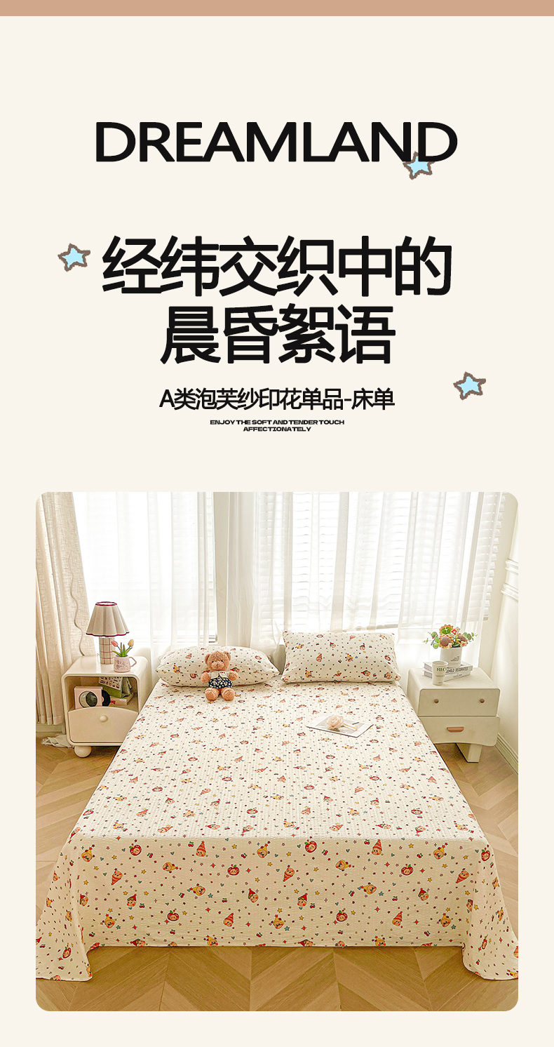 贝扬思家纺 2026新款高克重泡芙纱印花款单床单-软糖 CD-软糖 星星糖豆