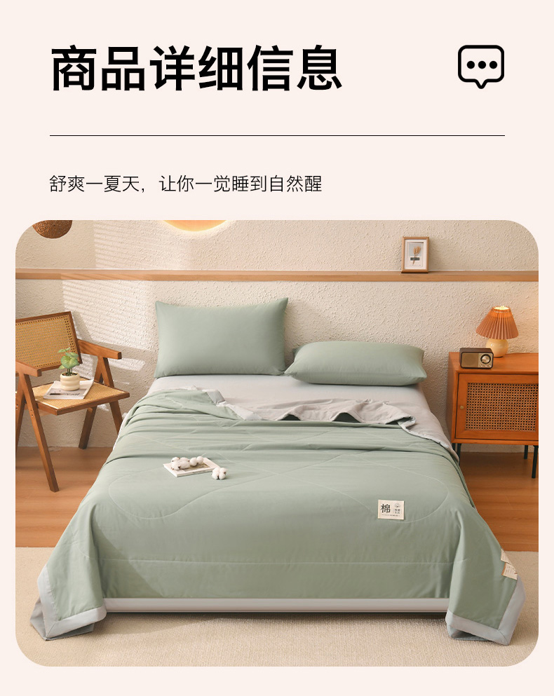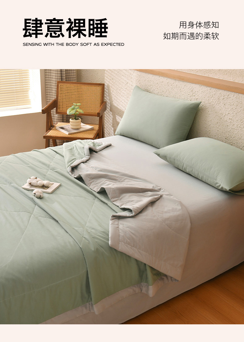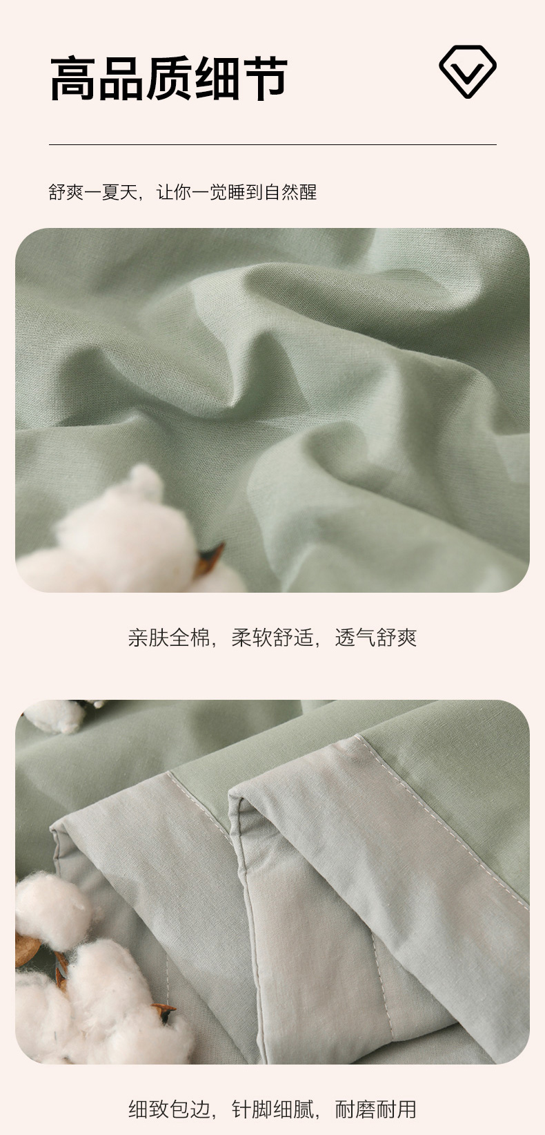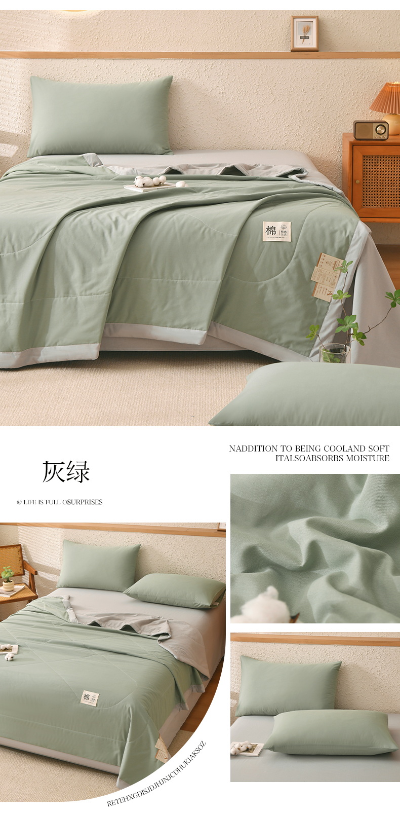 当前位置: 91家纺网 > 商品网购 > 被子 > 夏被 > 培童家纺 2026新款全棉色织水洗棉A类棉花夏被可机洗空调被四件套床单枕套 灰绿