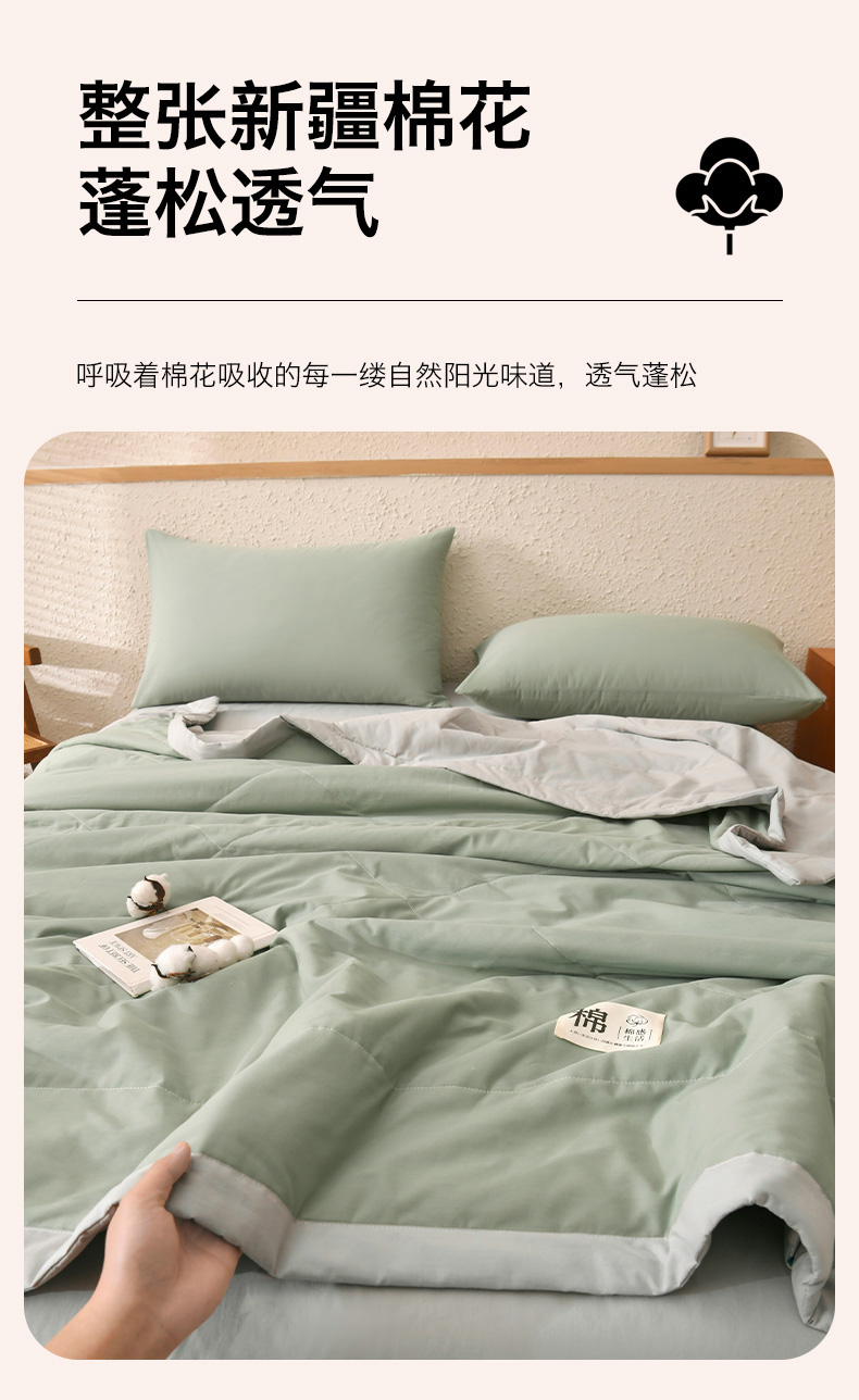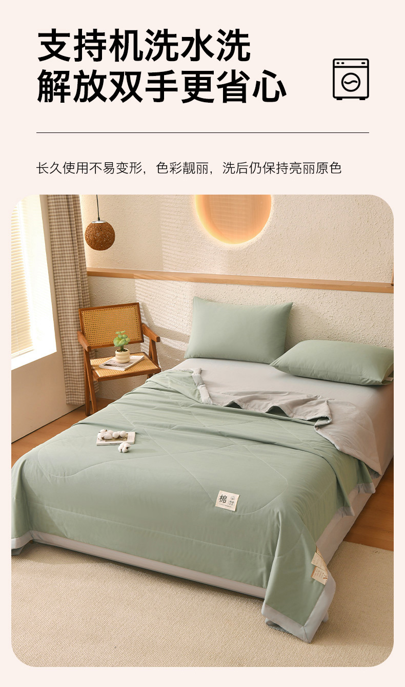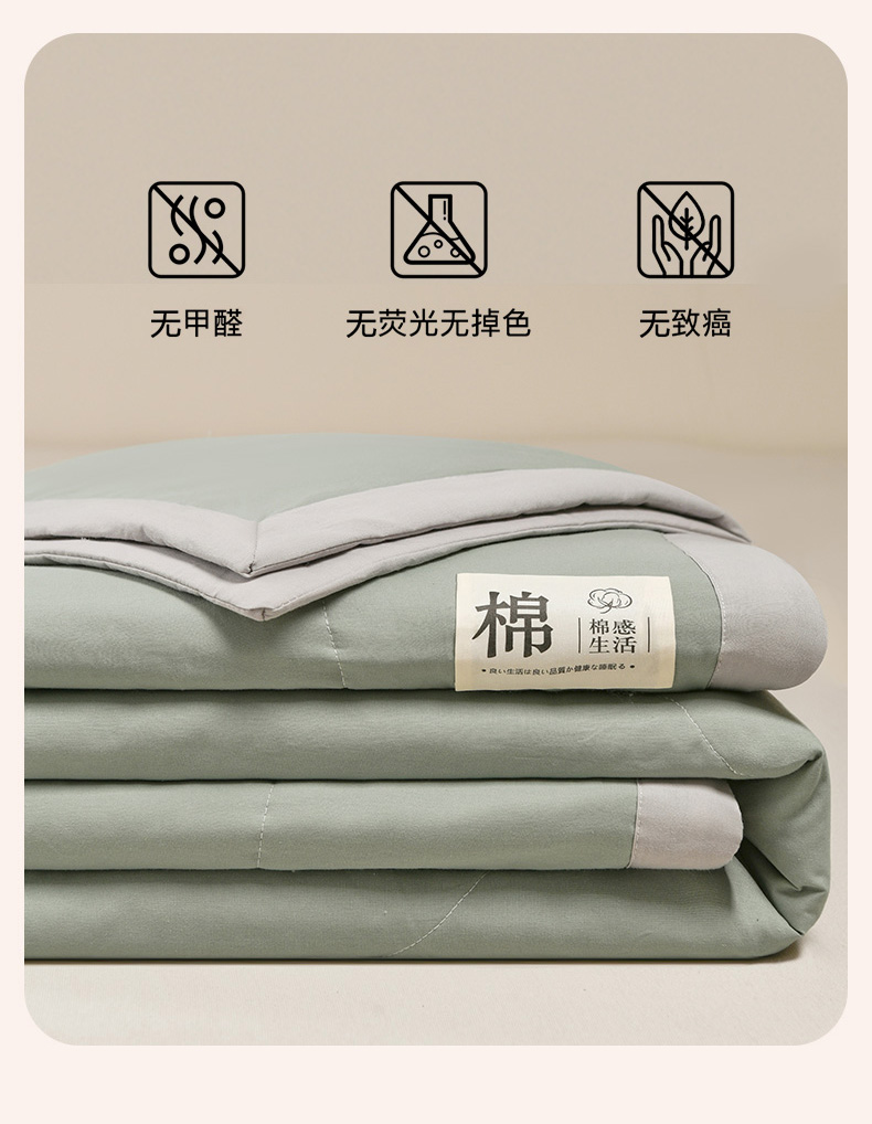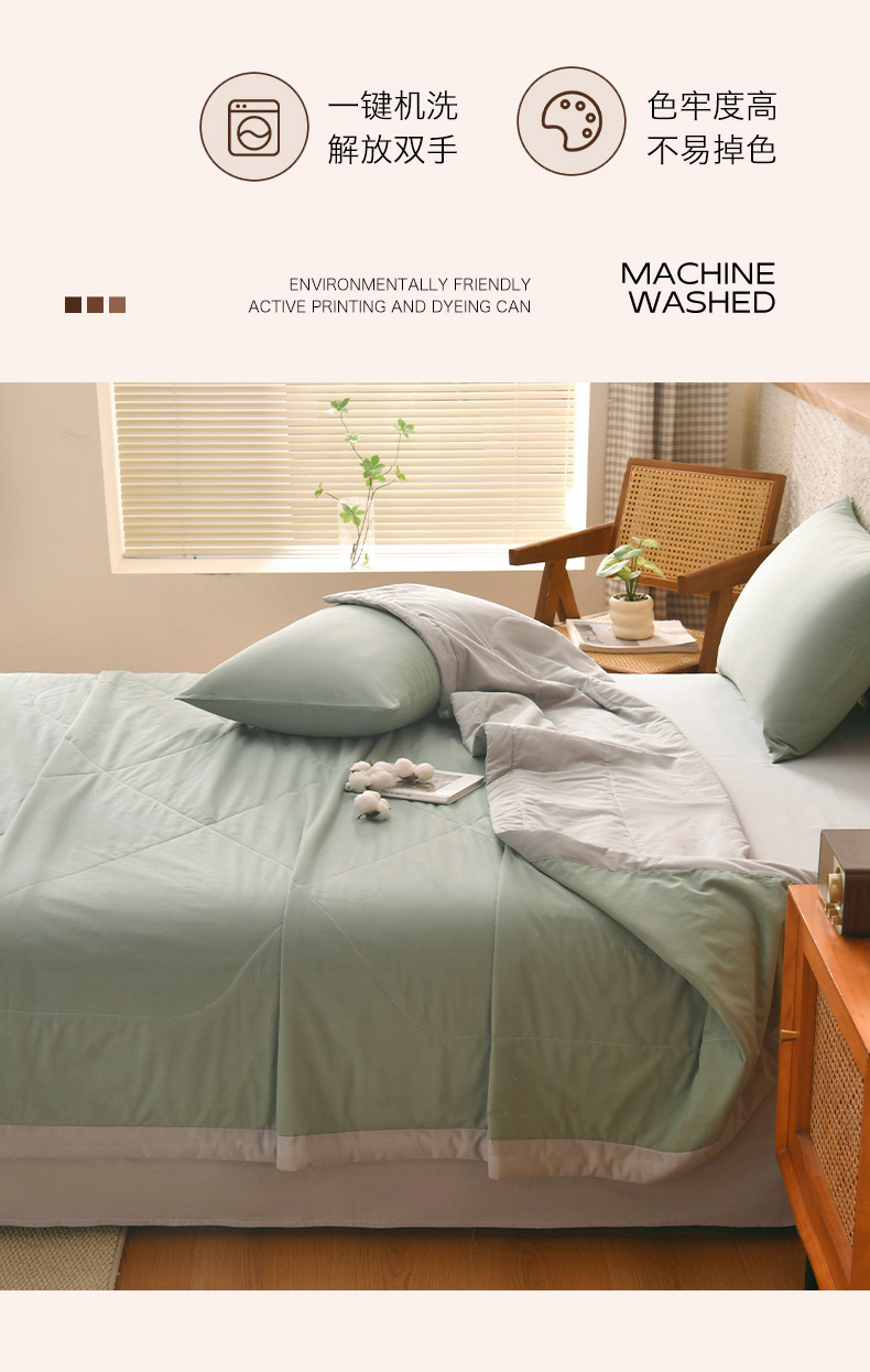 当前位置: 91家纺网 > 商品网购 > 被子 > 夏被 > 培童家纺 2026新款全棉色织水洗棉A类棉花夏被可机洗空调被四件套床单枕套 灰绿
