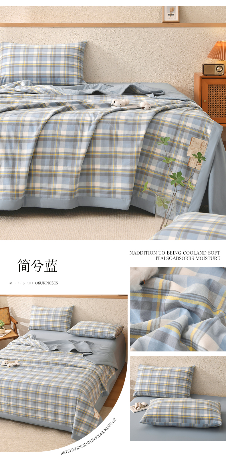 (总)培童家纺 2026新款全棉色织水洗棉A类棉花夏被可机洗空调被四件套床单枕套,简兮蓝,灰粉,灰卡,灰蓝,灰绿,简兮粉,卡小格,蓝大格,蓝小格,蓝中格,绿大格,品格-绿,印象-橘,印象-蓝,棕小格