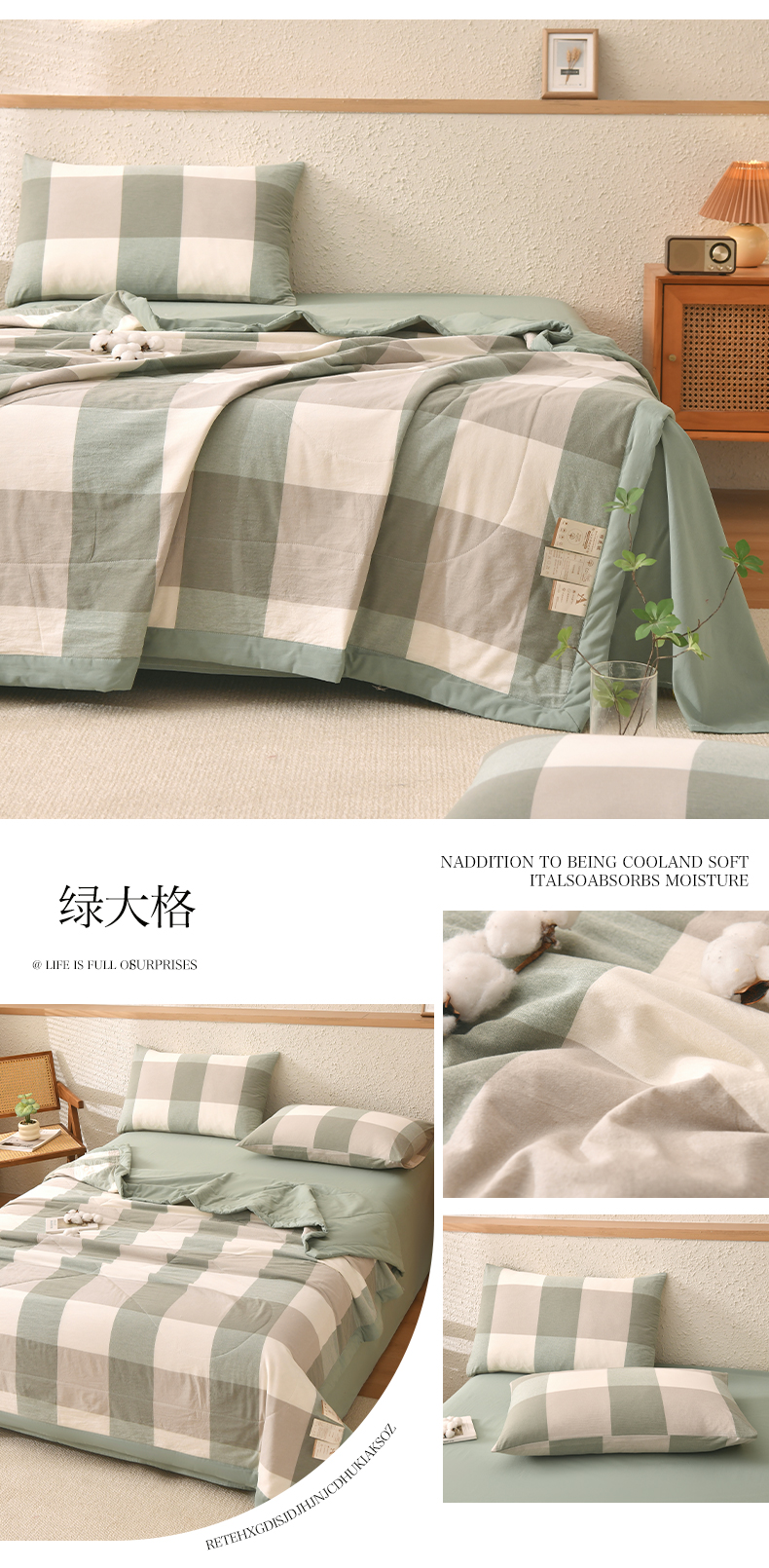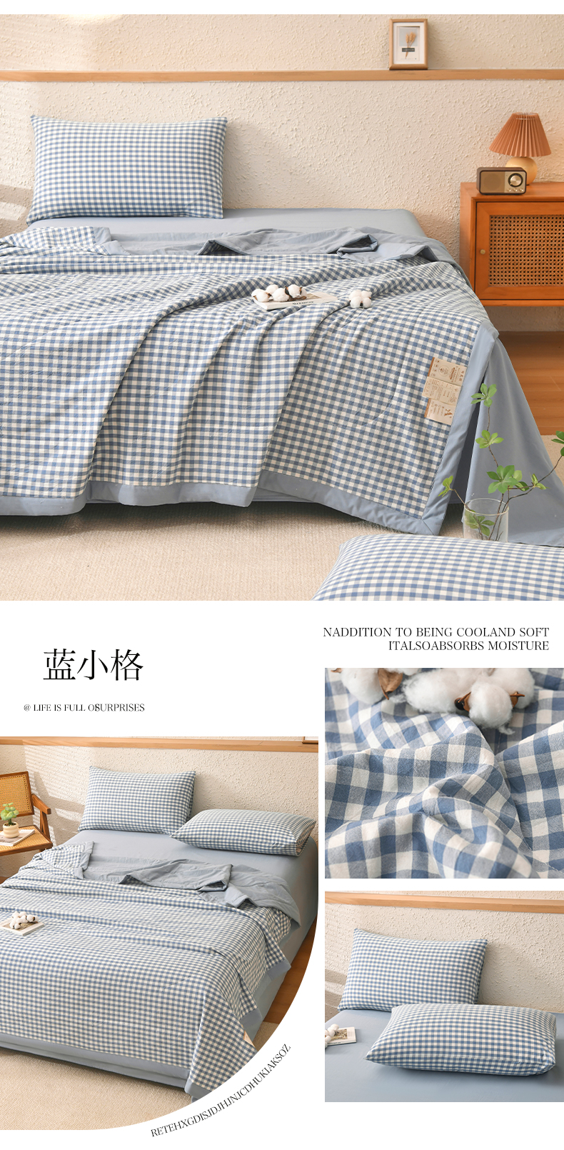 (总)培童家纺 2026新款全棉色织水洗棉A类棉花夏被可机洗空调被四件套床单枕套,简兮蓝,灰粉,灰卡,灰蓝,灰绿,简兮粉,卡小格,蓝大格,蓝小格,蓝中格,绿大格,品格-绿,印象-橘,印象-蓝,棕小格