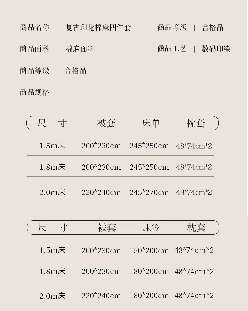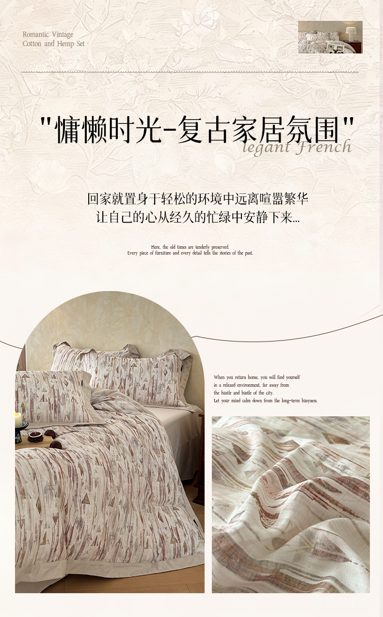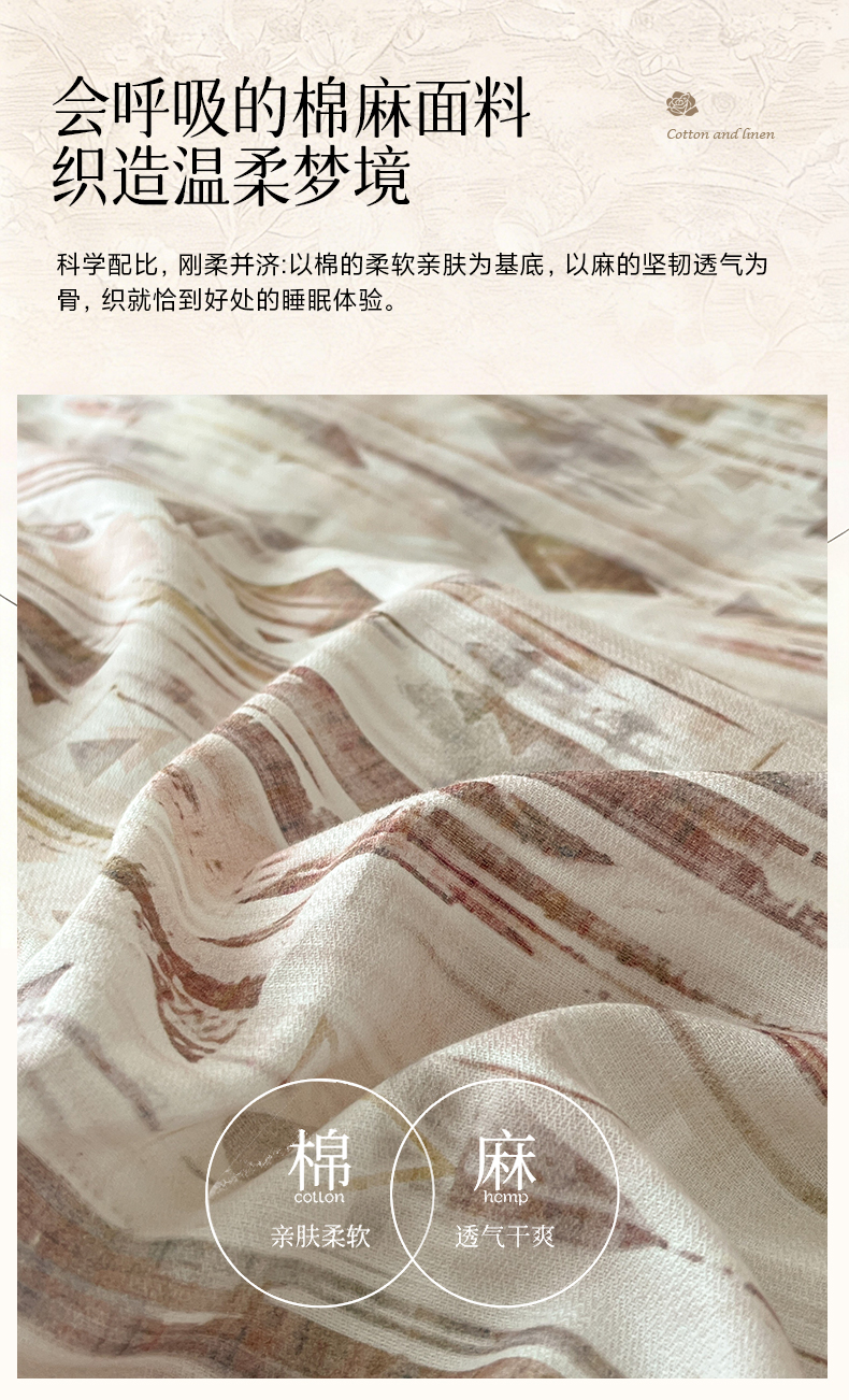 被面材质: 棉麻:棉+亚麻(混纺)