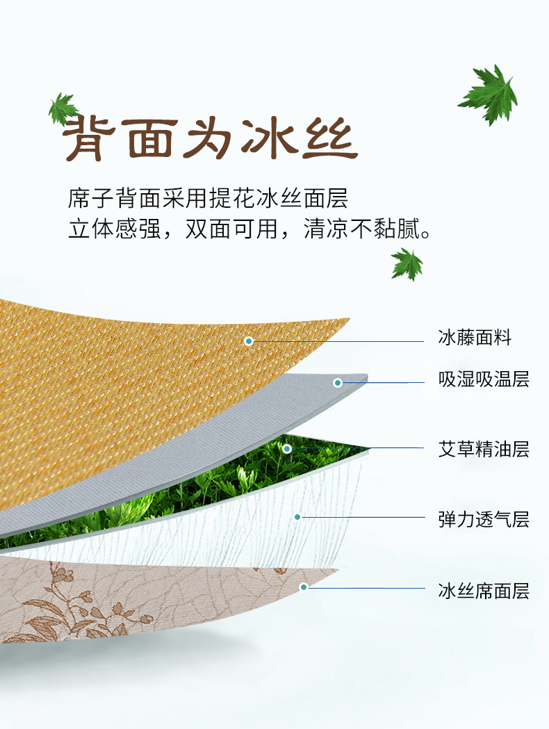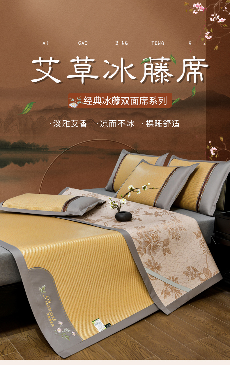 商品名称:小牛席业 2026新款艾草清香冰藤-双面席系列 艾草冰藤席-浅咖