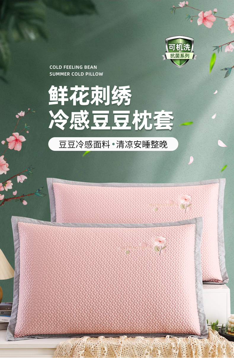 (总)小牛席业 2026新款鲜花刺绣凉感冰丝枕套单枕套枕套单件,鲜花凉感冰丝枕套-粉色,鲜花凉感冰丝枕套-灰色,鲜花凉感冰丝枕套-蓝色,鲜花凉感冰丝枕套-绿色,组合图 仅供参考