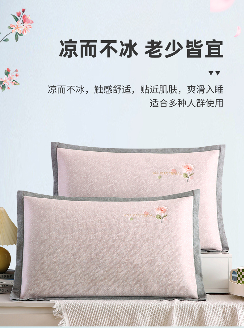 (总)小牛席业 2026新款鲜花刺绣凉感冰丝枕套单枕套枕套单件,鲜花凉感冰丝枕套-粉色,鲜花凉感冰丝枕套-灰色,鲜花凉感冰丝枕套-蓝色,鲜花凉感冰丝枕套-绿色,组合图 仅供参考