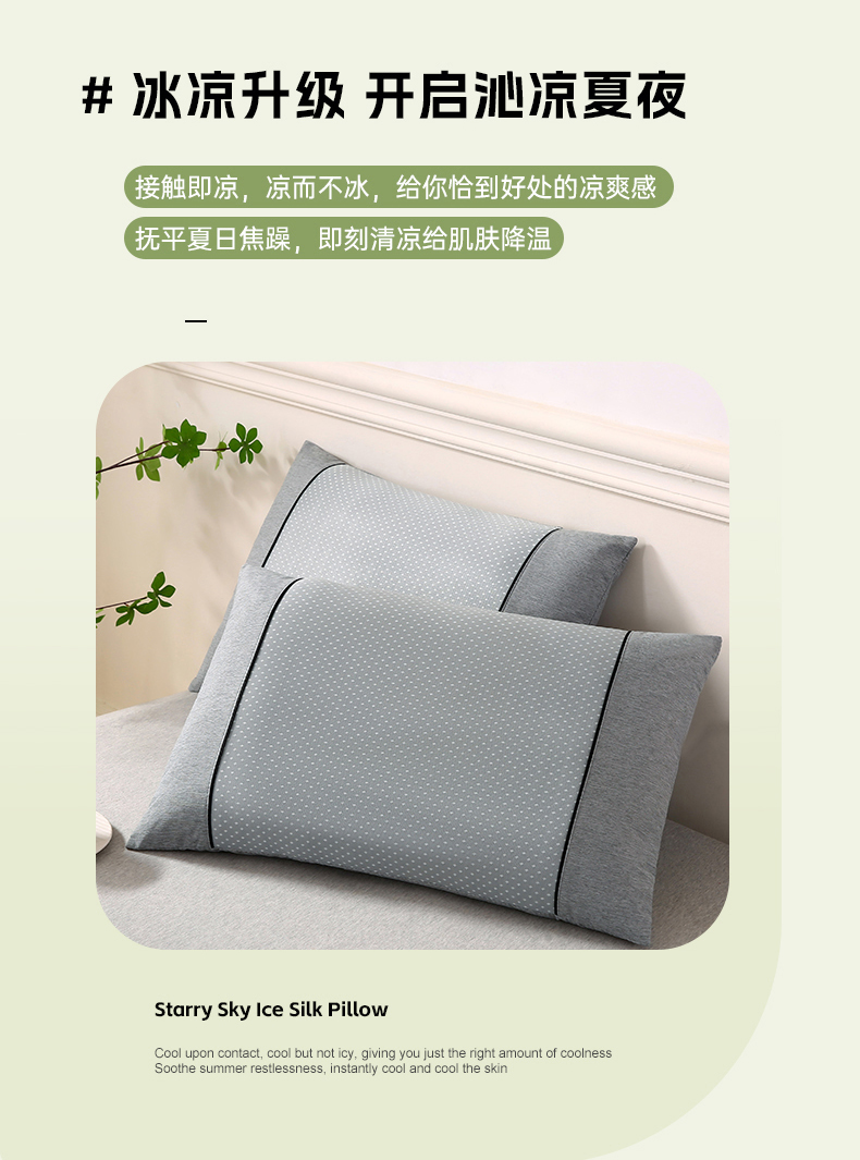 小牛席业 2026新款PE满天星凉感冰丝枕【夏凉枕】枕头枕芯 满天星冰丝夏凉枕-灰色