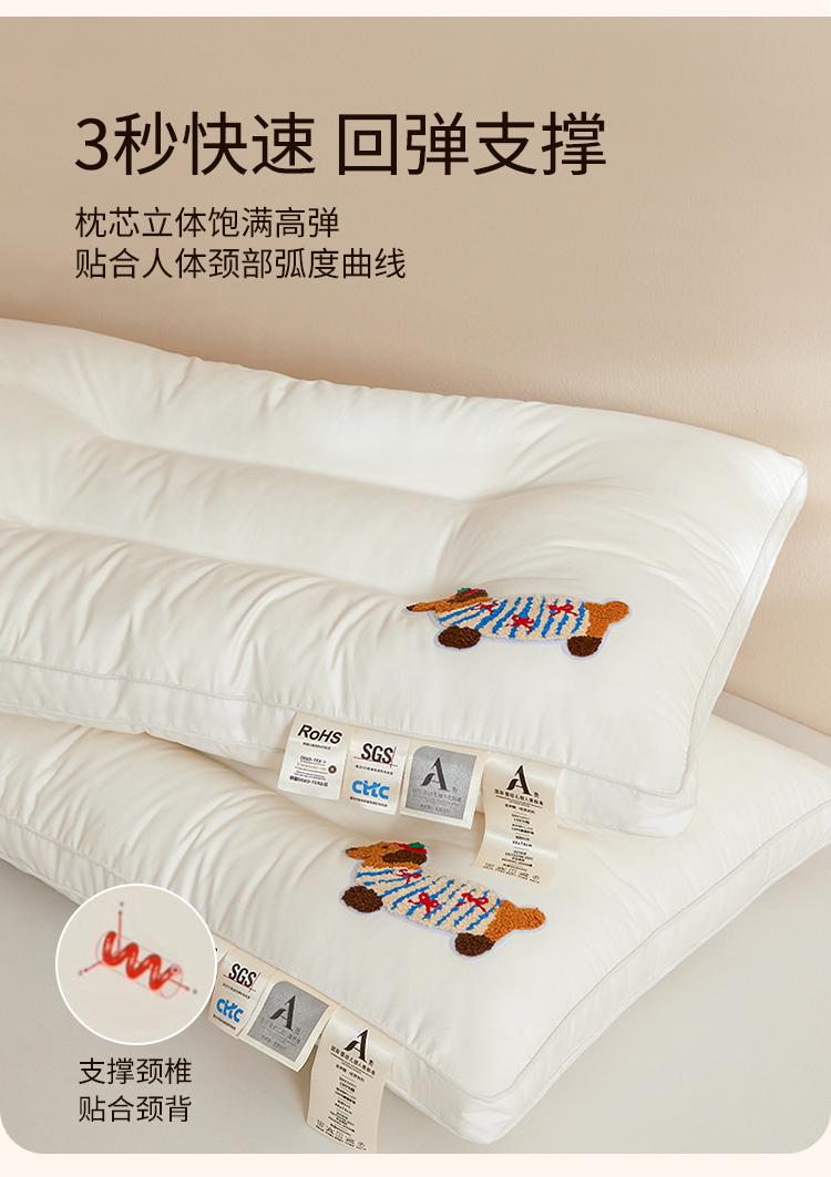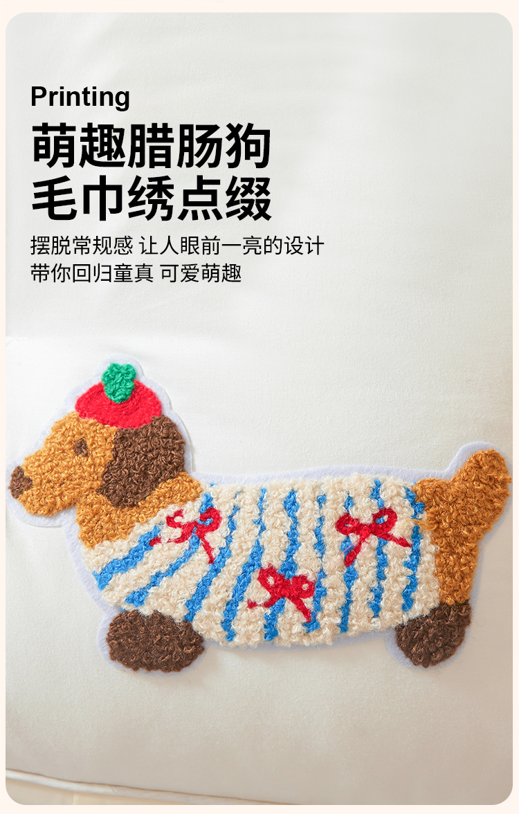 商品名称:(总)小桃姐家纺 2025新款腊肠狗卡通 纯棉定型枕 毛巾绣 全棉纯棉枕头枕芯