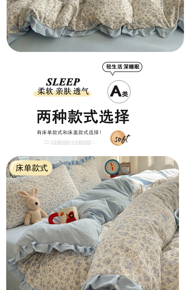 (总)迪梦姿家纺 2026新款高克重泡芙纱泡泡纱床单款四件套系列,兔仔花田,春日甜桃心米,纯宅熊,躲猫猫,花野兔眠,灰樱桃,旧街星星,猫咪集粉,莓系花伐,描线小猫咖,木马小花团,浅沙花影黄,浅沙花影蓝,田园兔,甜喵块块,甜心咖絮,甜心木马卷,小兔裙边,星野蝴蝶结,悦悦小兔,只闻花香,紫雾花蝶集
