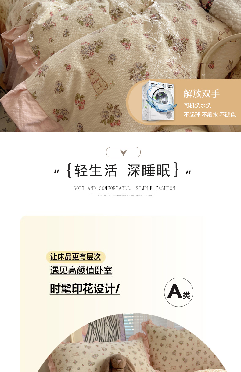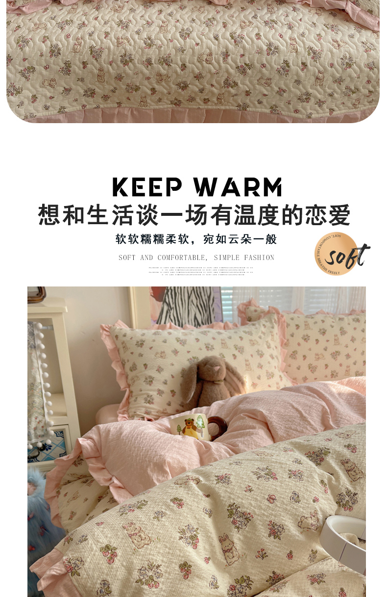 (总)迪梦姿家纺 2026新款高克重泡芙纱泡泡纱床盖款四件套系列,紫雾花蝶集,春日甜桃心米,纯宅熊,躲猫猫,花野兔眠,灰樱桃,旧街星星,猫咪集粉,莓系花伐,描线小猫咖,木马小花团,浅沙花影黄,浅沙花影蓝,田园兔,甜喵块块,甜心咖絮,甜心木马卷,兔仔花田,小兔裙边,星野蝴蝶结,悦悦小兔,只闻花香