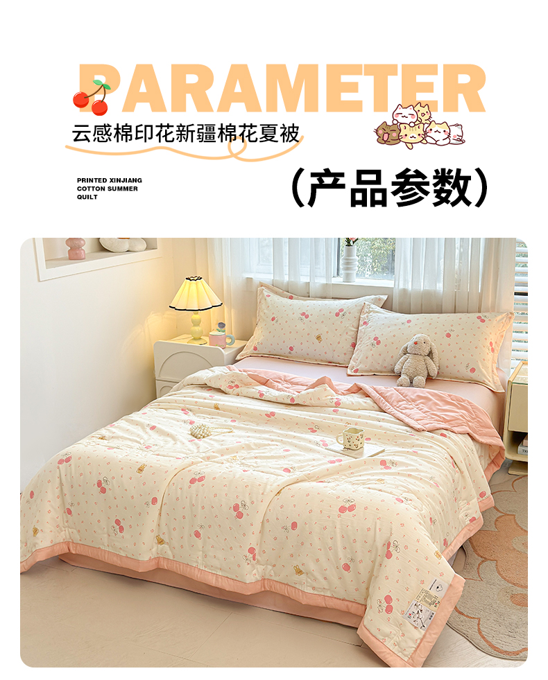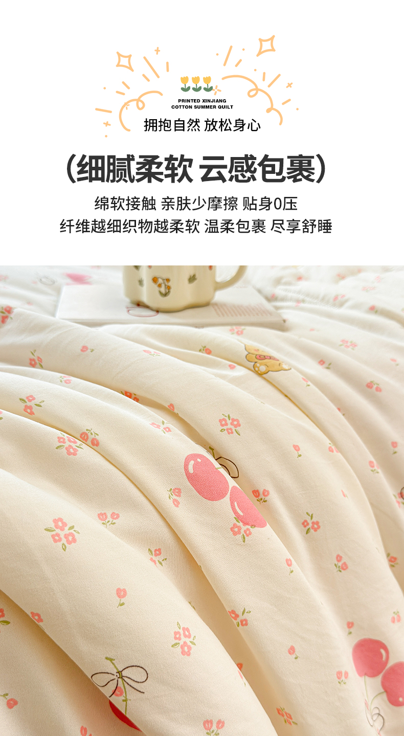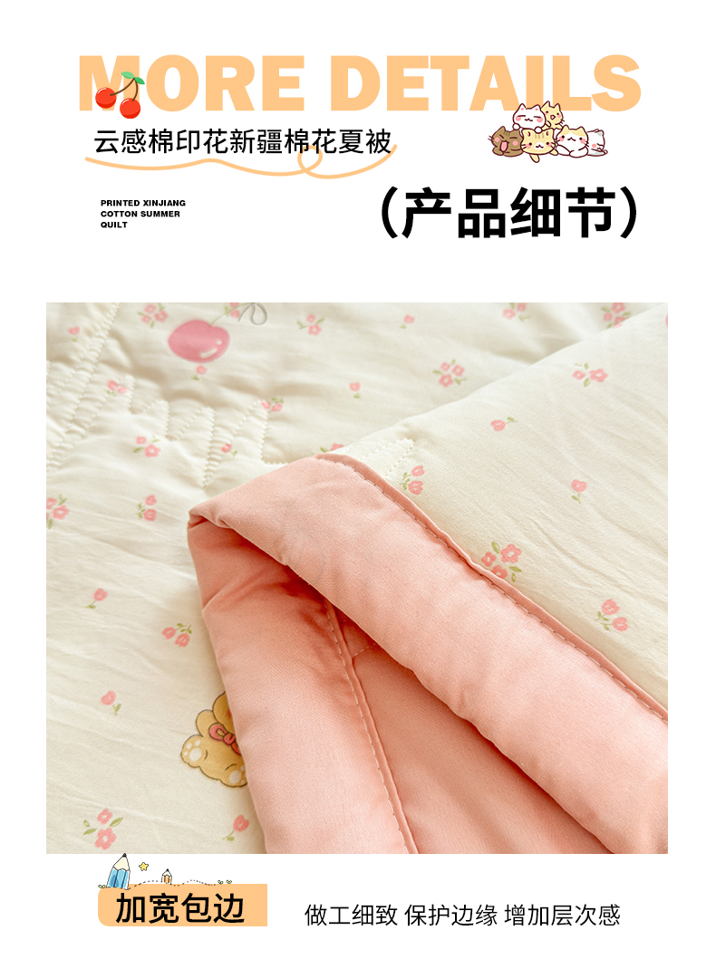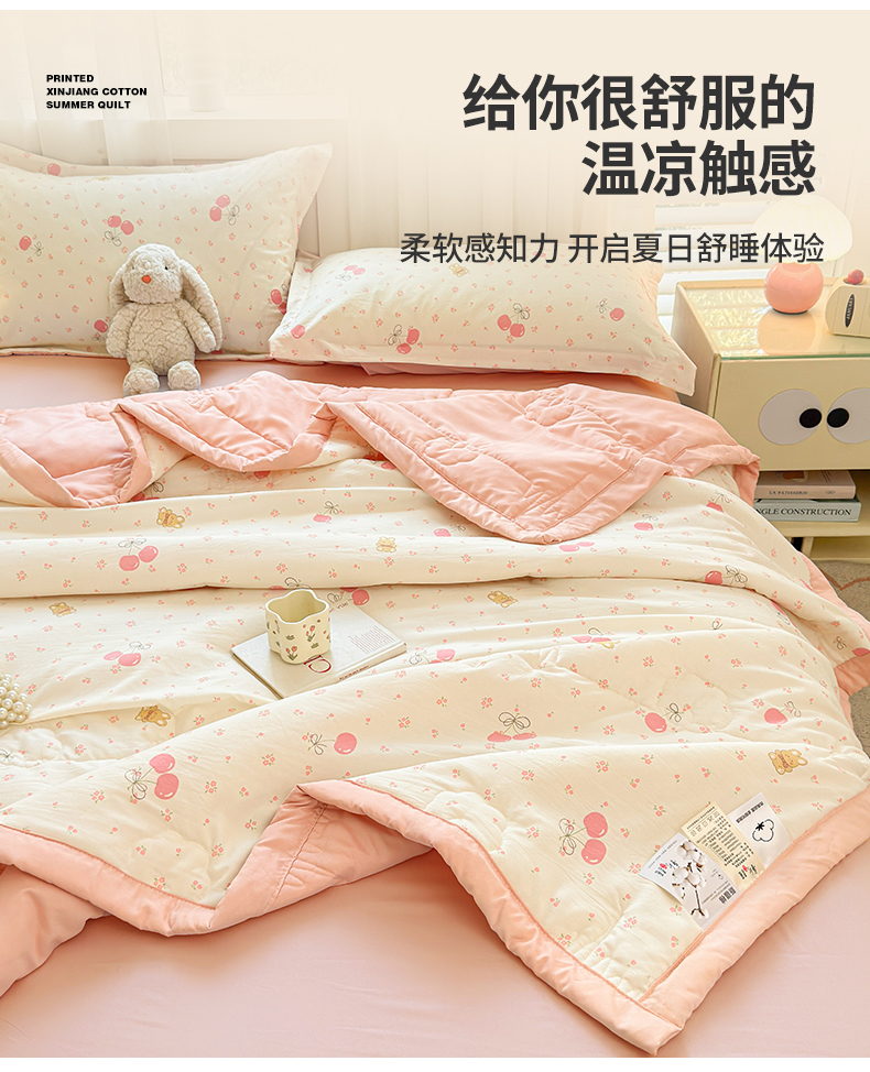 商品名称:2026新款A类新疆棉花夏凉被加宽包边水洗棉卡通印花吸湿透气棉花夏被空调被 凌香 甜美樱桃