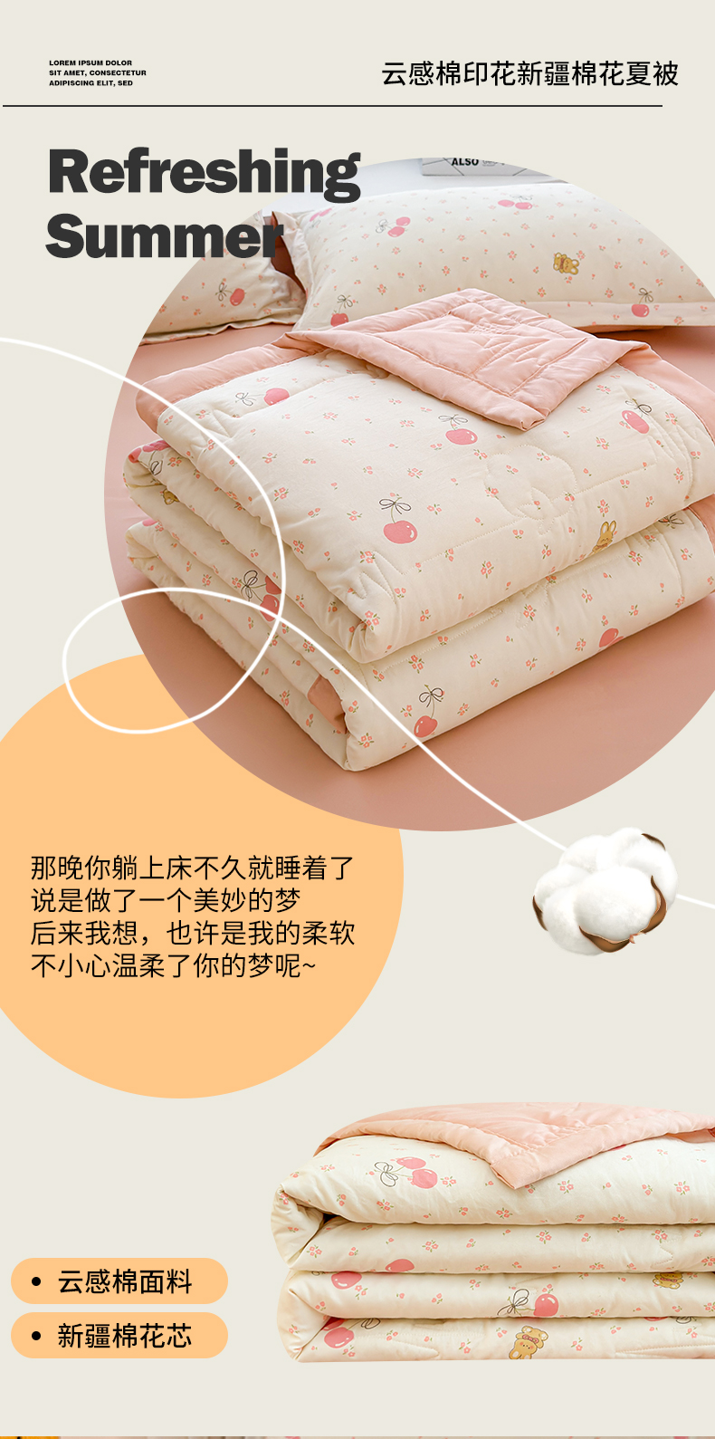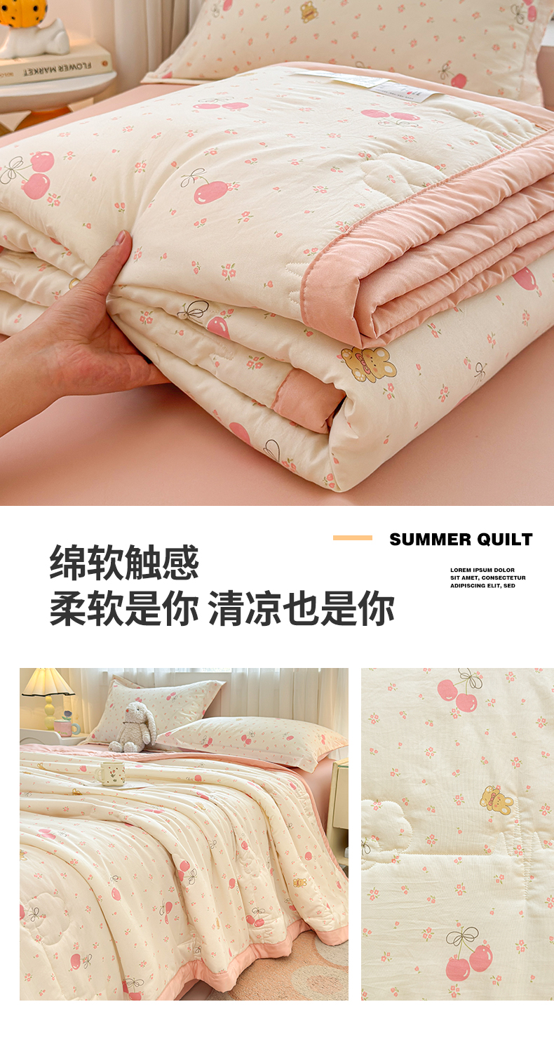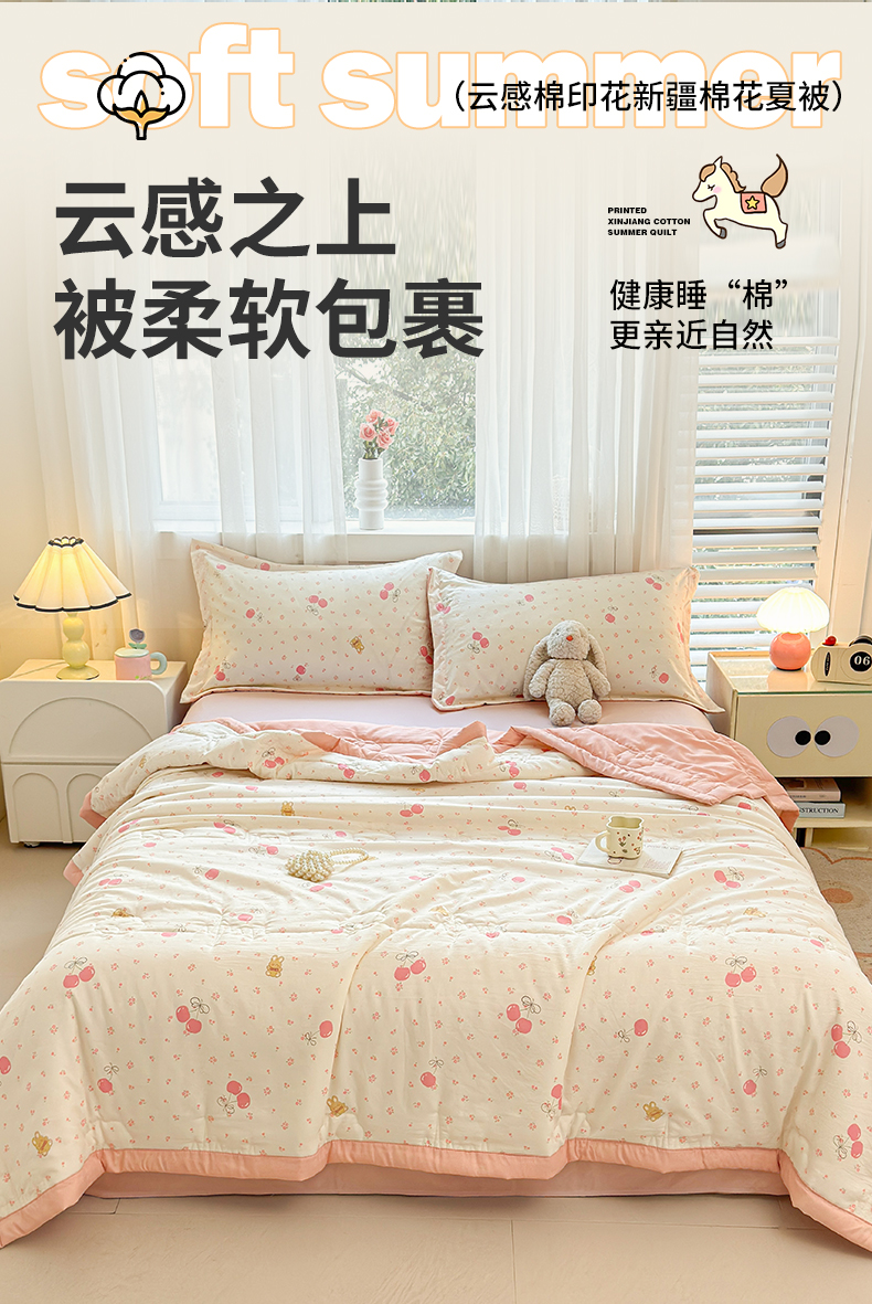 商品名称:2026新款A类新疆棉花夏凉被加宽包边水洗棉卡通印花吸湿透气棉花夏被空调被 凌香 甜美樱桃
