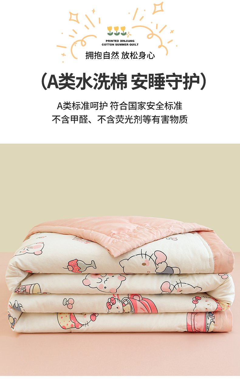 2026新款A类新疆棉花夏凉被加宽包边水洗棉卡通印花吸湿透气棉花夏被空调被 凌香 宠物语