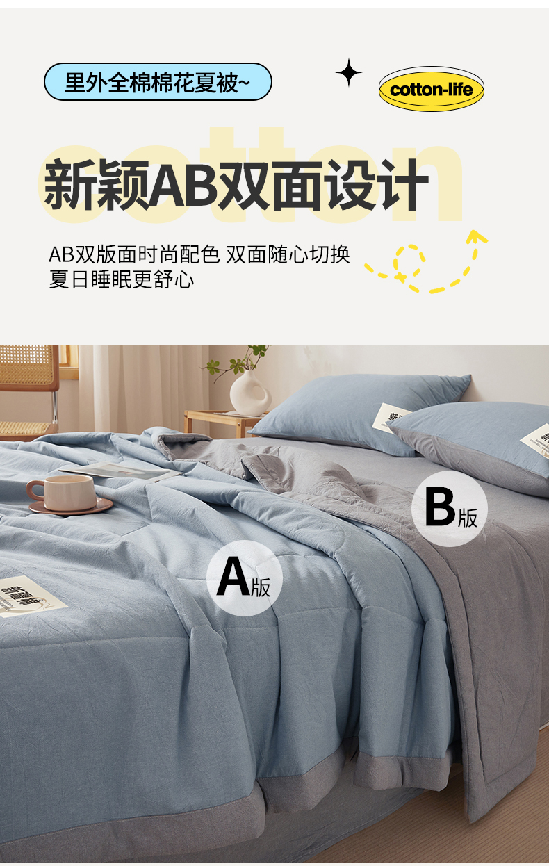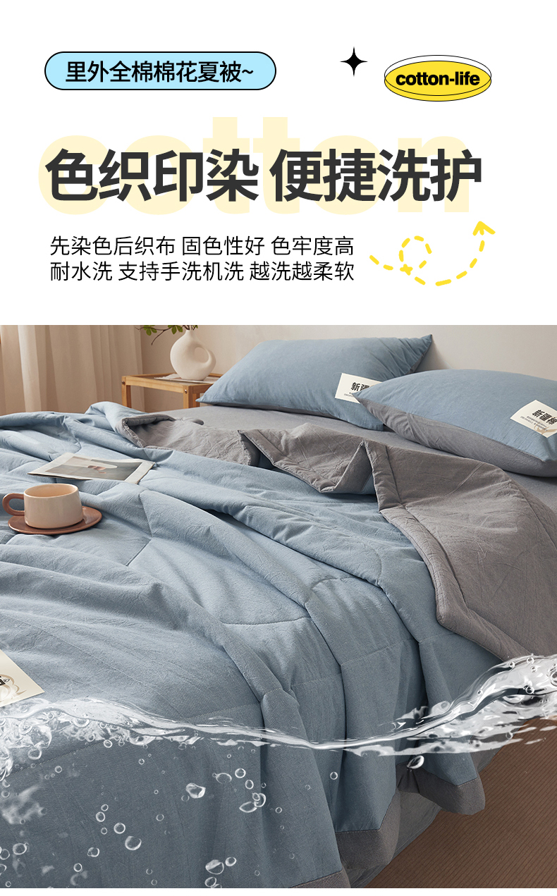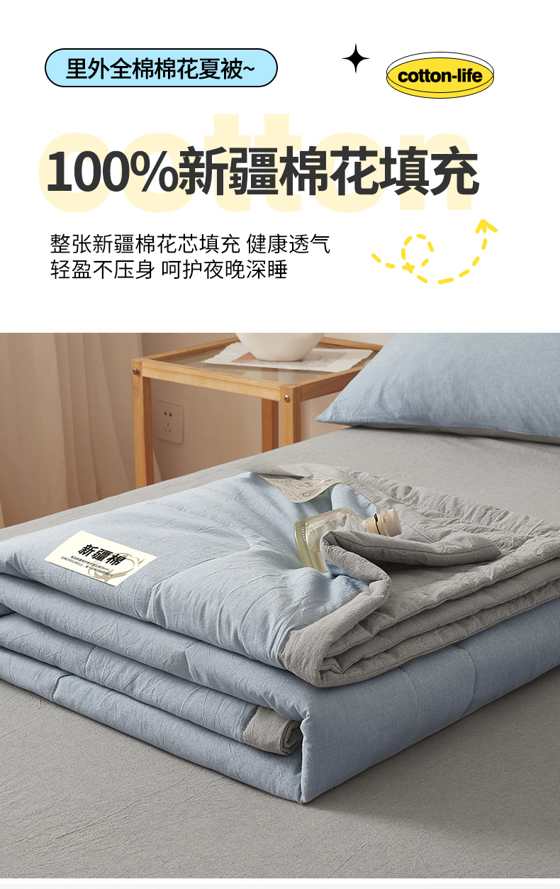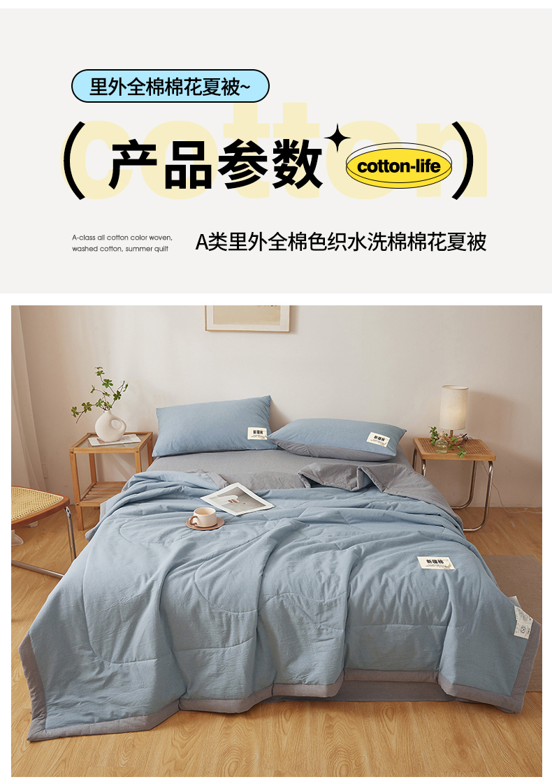 商品名称:2026新款A类里外全棉夏凉被100%新疆棉纯棉全棉填充无印格子款空调被全棉夏被 里外全棉-双拼浅蓝