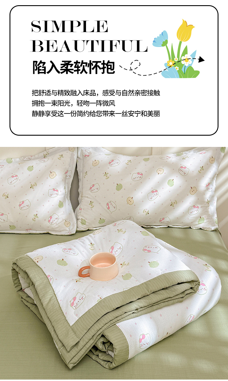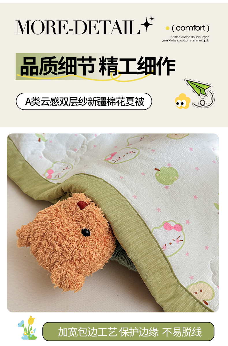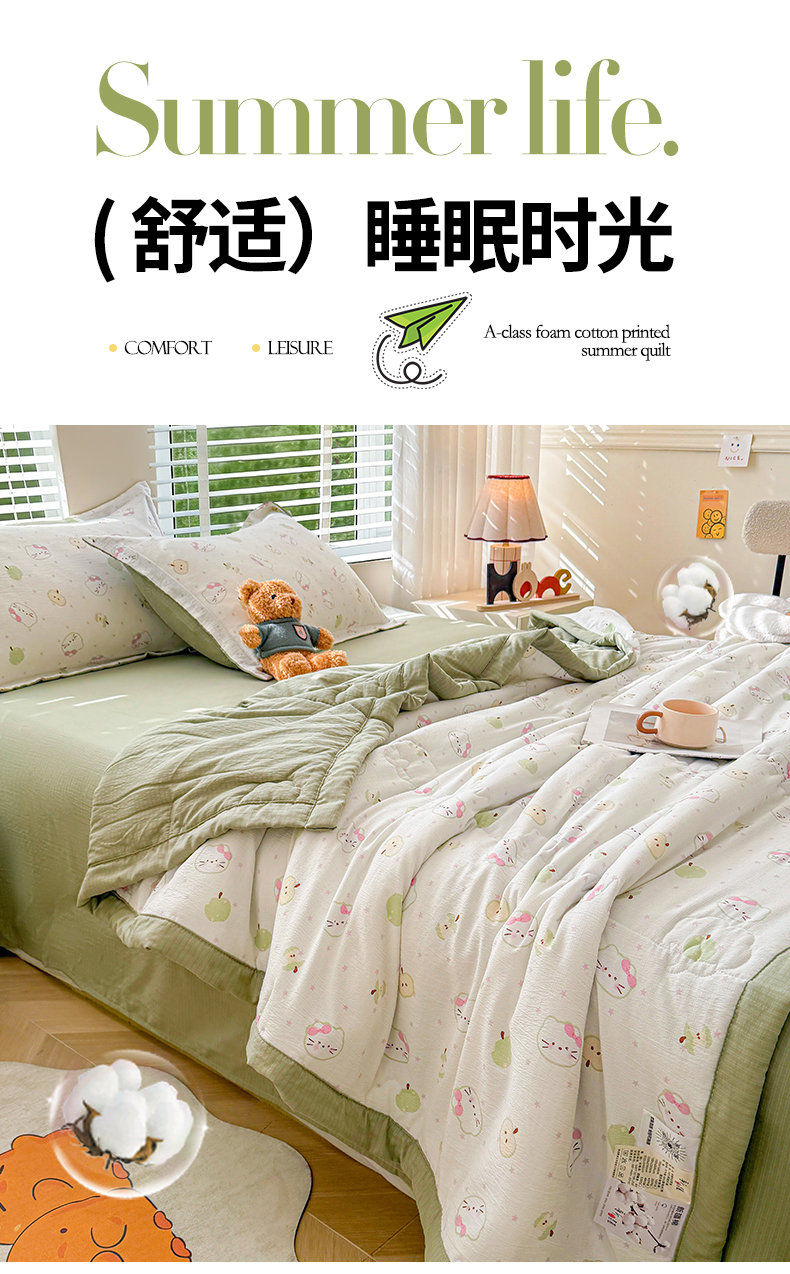 商品名称:2026新款A类新疆棉花夏凉被加宽包边水洗棉卡通印花吸湿透气棉花夏被空调被 云感奶芙猫