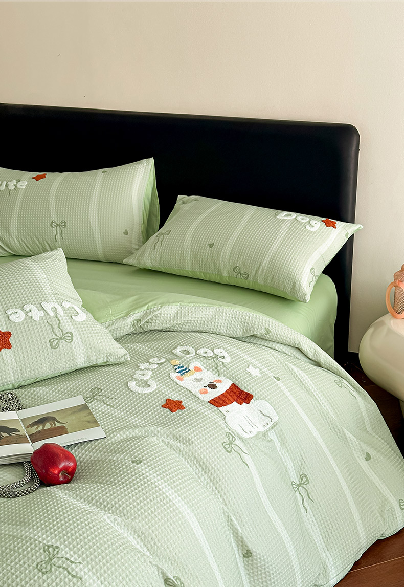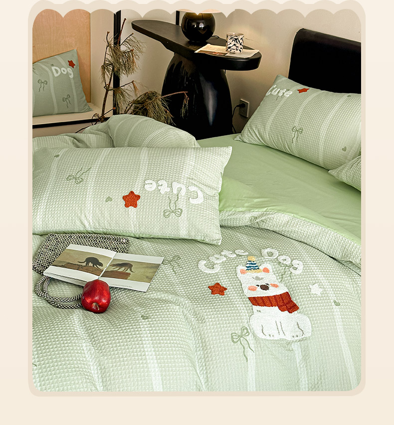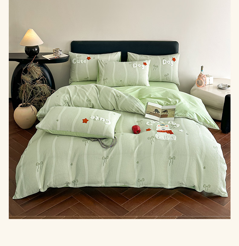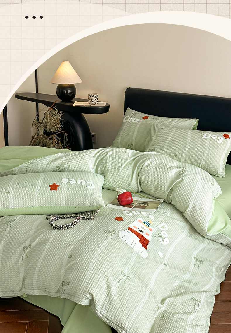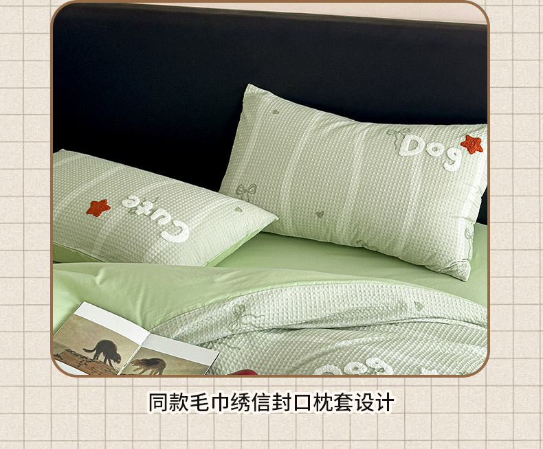 商品名称:ab家纺 2026新款全棉华夫格毛巾绣四件套 舒沐-绿