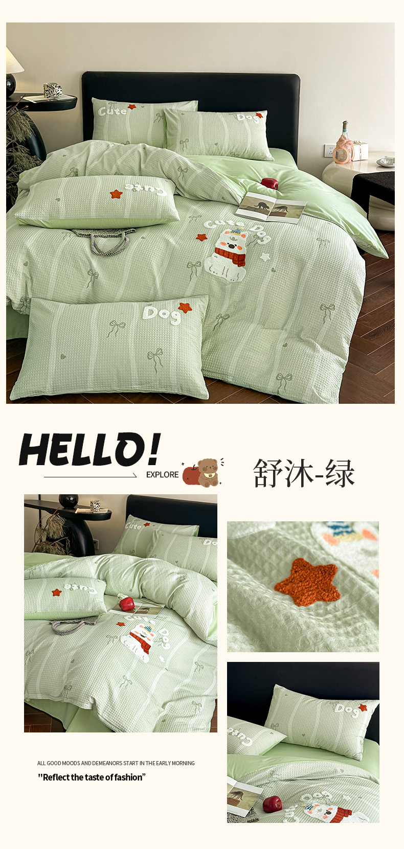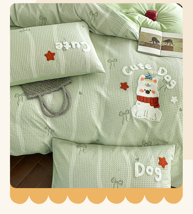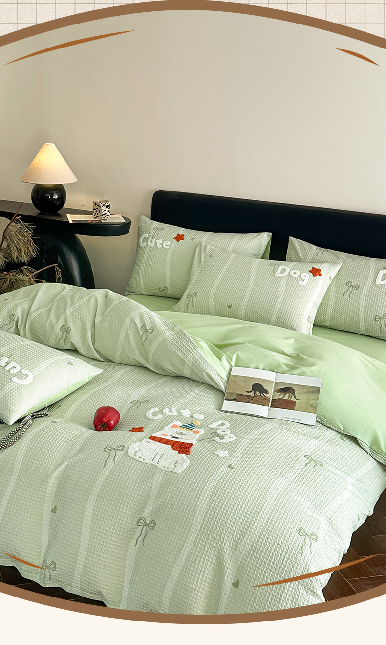 商品名称:ab家纺 2026新款全棉华夫格毛巾绣四件套 舒沐-绿