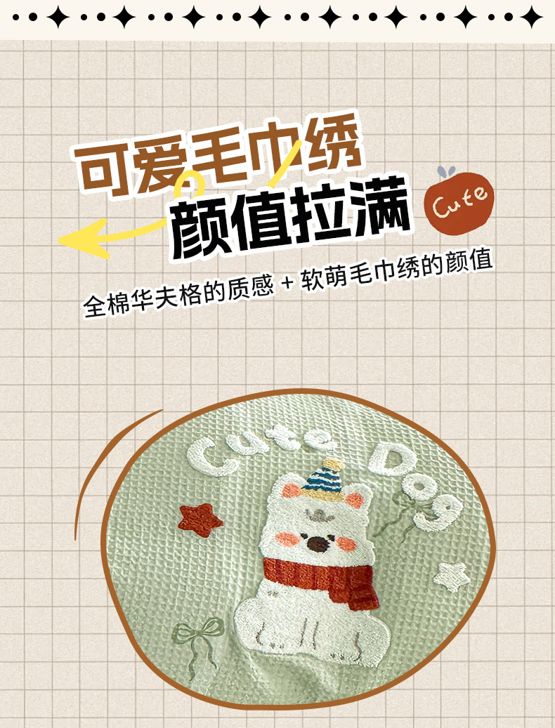 ab家纺 2026新款全棉华夫格毛巾绣四件套 舒沐-绿