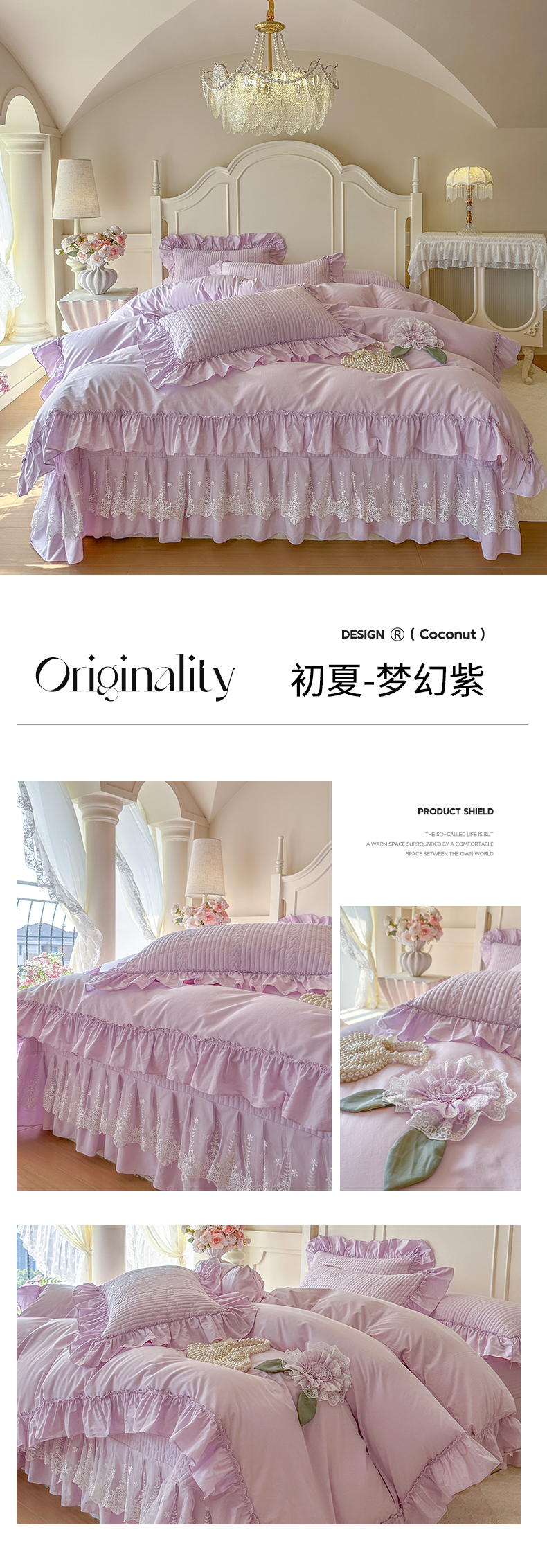 (总)瑞宝 2025新款法式花边全棉贡缎提花床裙款四件套-梦之语(控价265起),梦之语-蜜粉,梦之语-奶油白,梦之语-青柠绿,梦之语-香芋紫