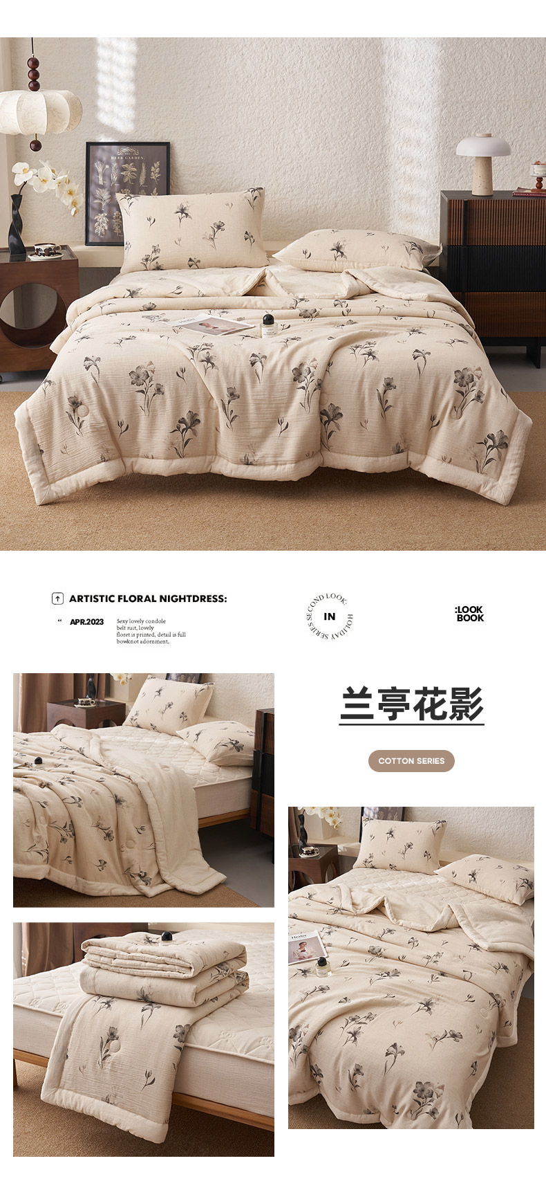 吾诺家居 2026新款棉麻系列-棉麻印花棉花夏被 组合