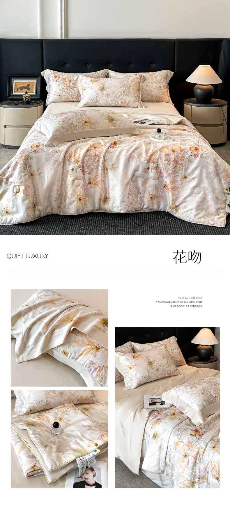 当前位置: 91家纺网 > 商品网购 > 床品套件 > 四件套 > 莱赛尔四件套 > 慕晨 2026新款大宽边高级简奢款凉感天丝莱赛尔数码印花丝滑丝绸四件套直播热款 木棉