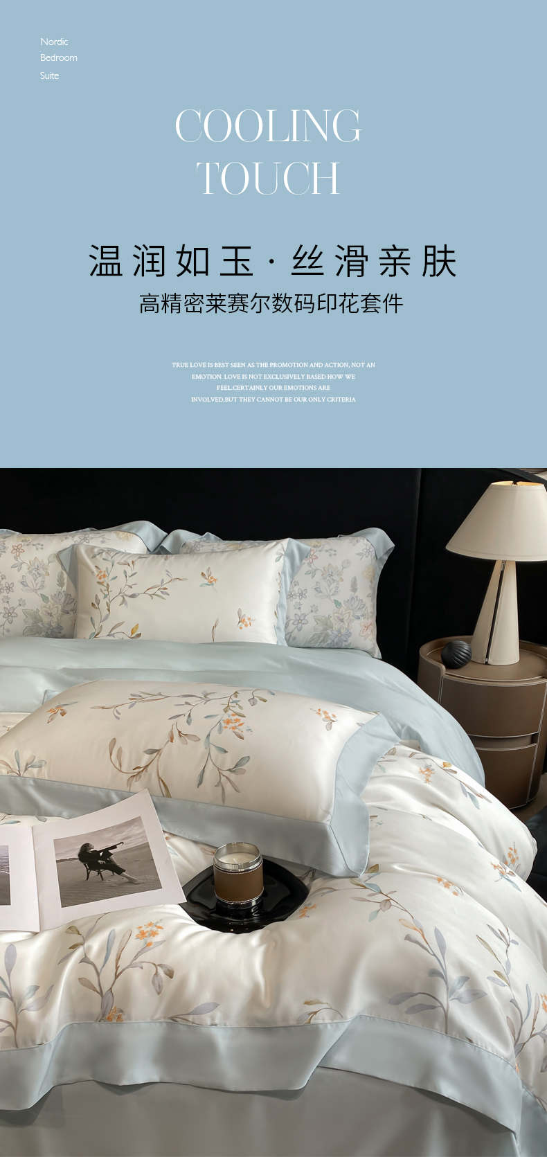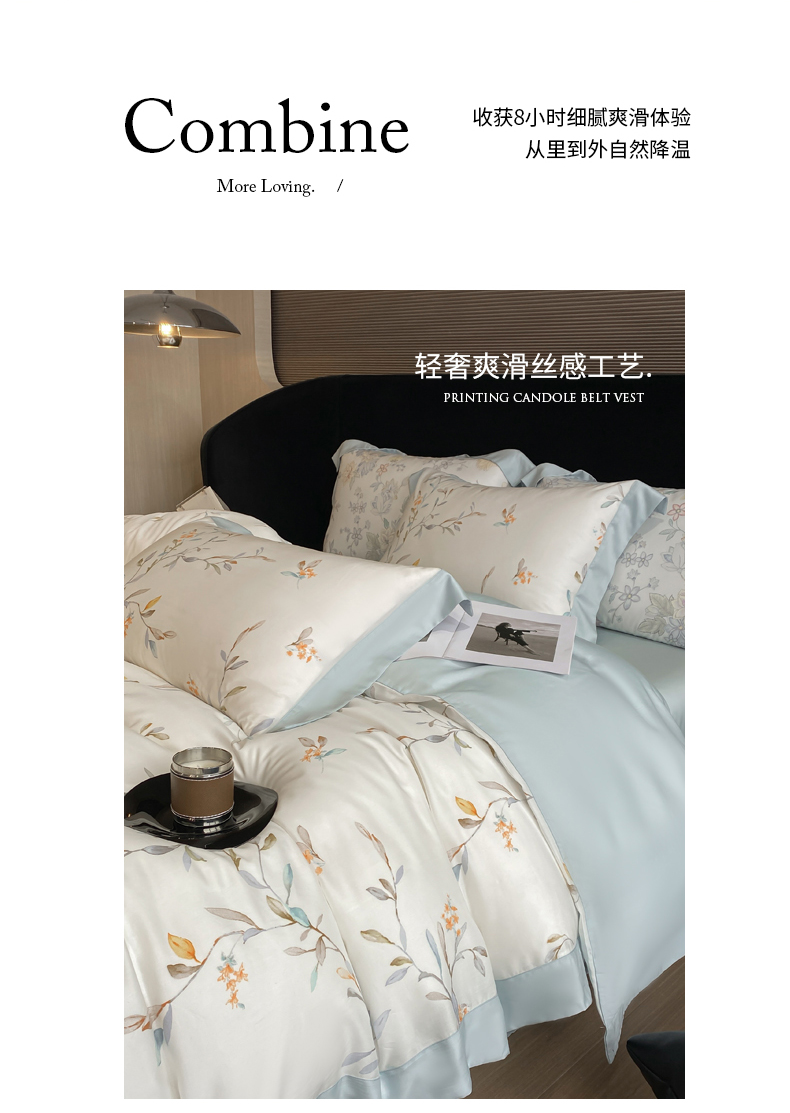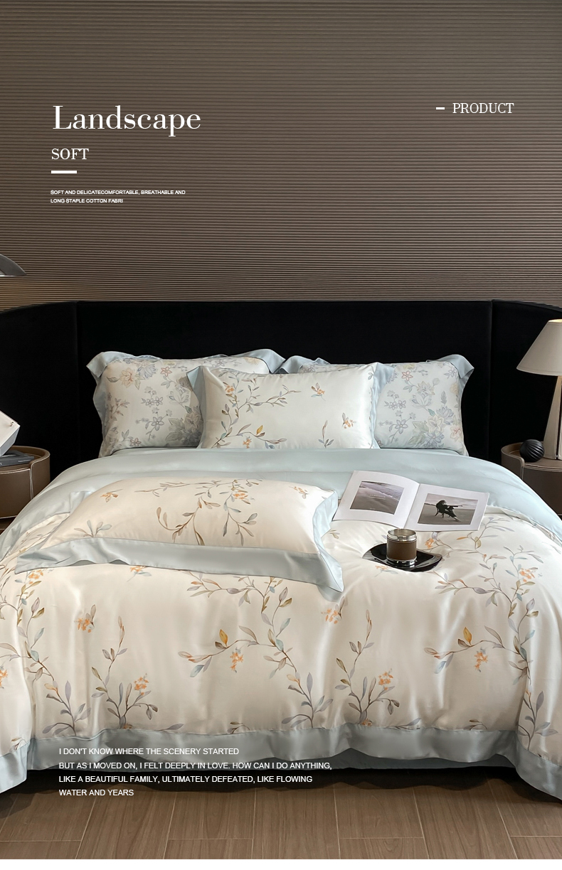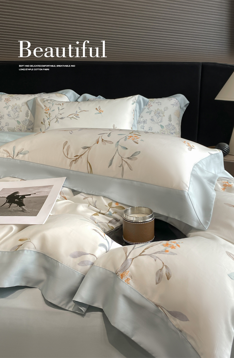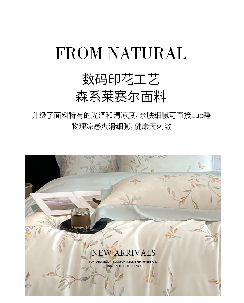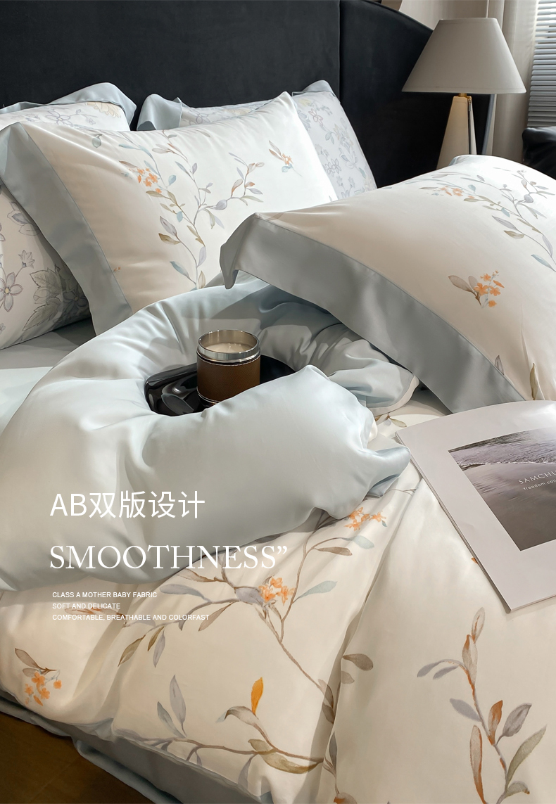 当前位置: 91家纺网 > 商品网购 > 床品套件 > 四件套 > 莱赛尔四件套 > 慕晨 2026新款大宽边高级简奢款凉感天丝莱赛尔数码印花丝滑丝绸四件套直播热款 清雅