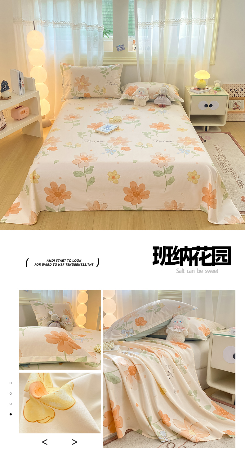 • 91家纺网 家纺一手货源 找家纺 女子家纺 2026新款全棉印花小清新系列-单床单 暖樱之舞