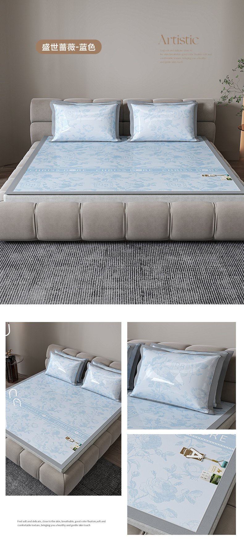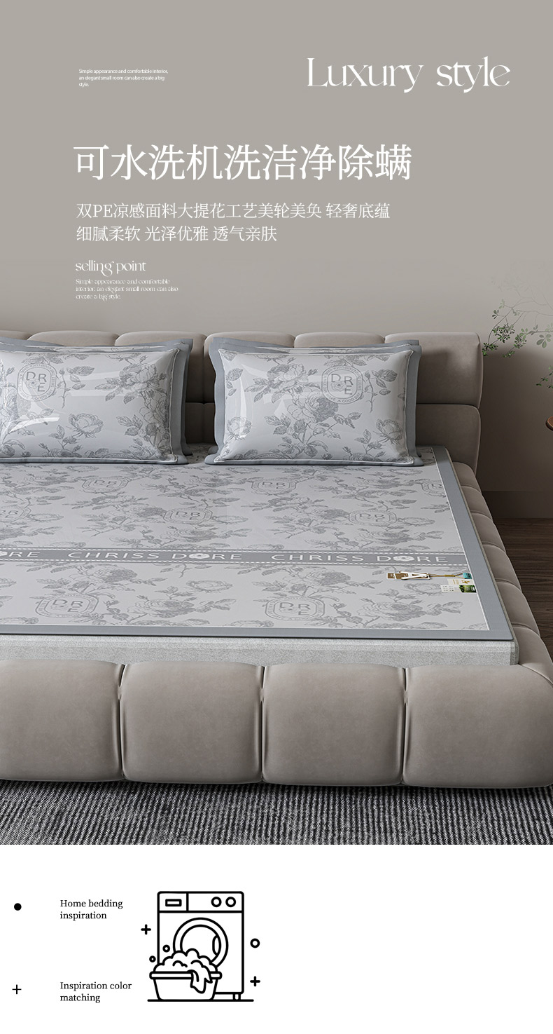 (总)小牛席业 2026新款【实拍风格】双PE高凉感-迪恩玫瑰提花冰丝席凉席竹席藤席冰藤席乳胶席豆豆席,灰色,粉色,蓝色,香槟