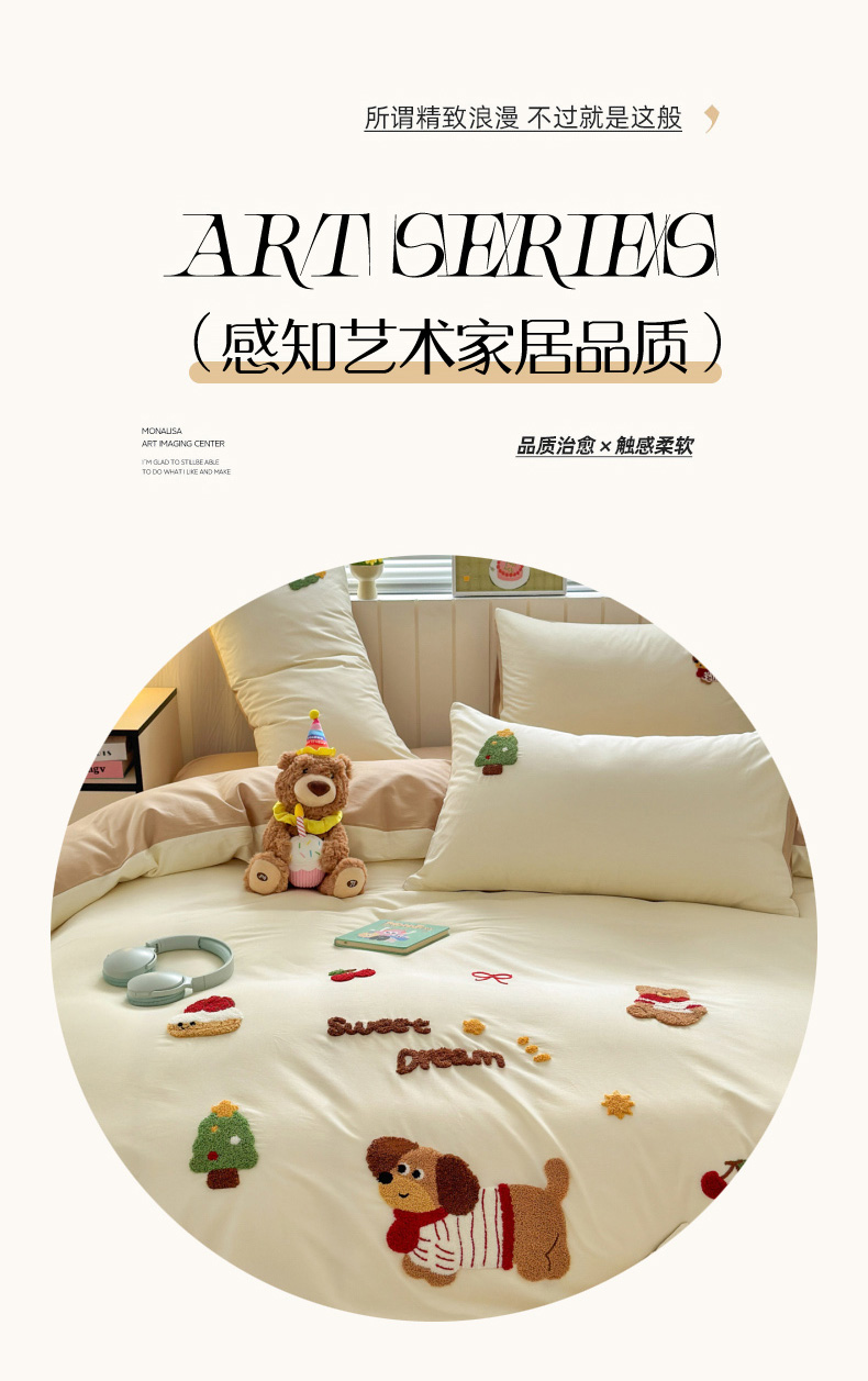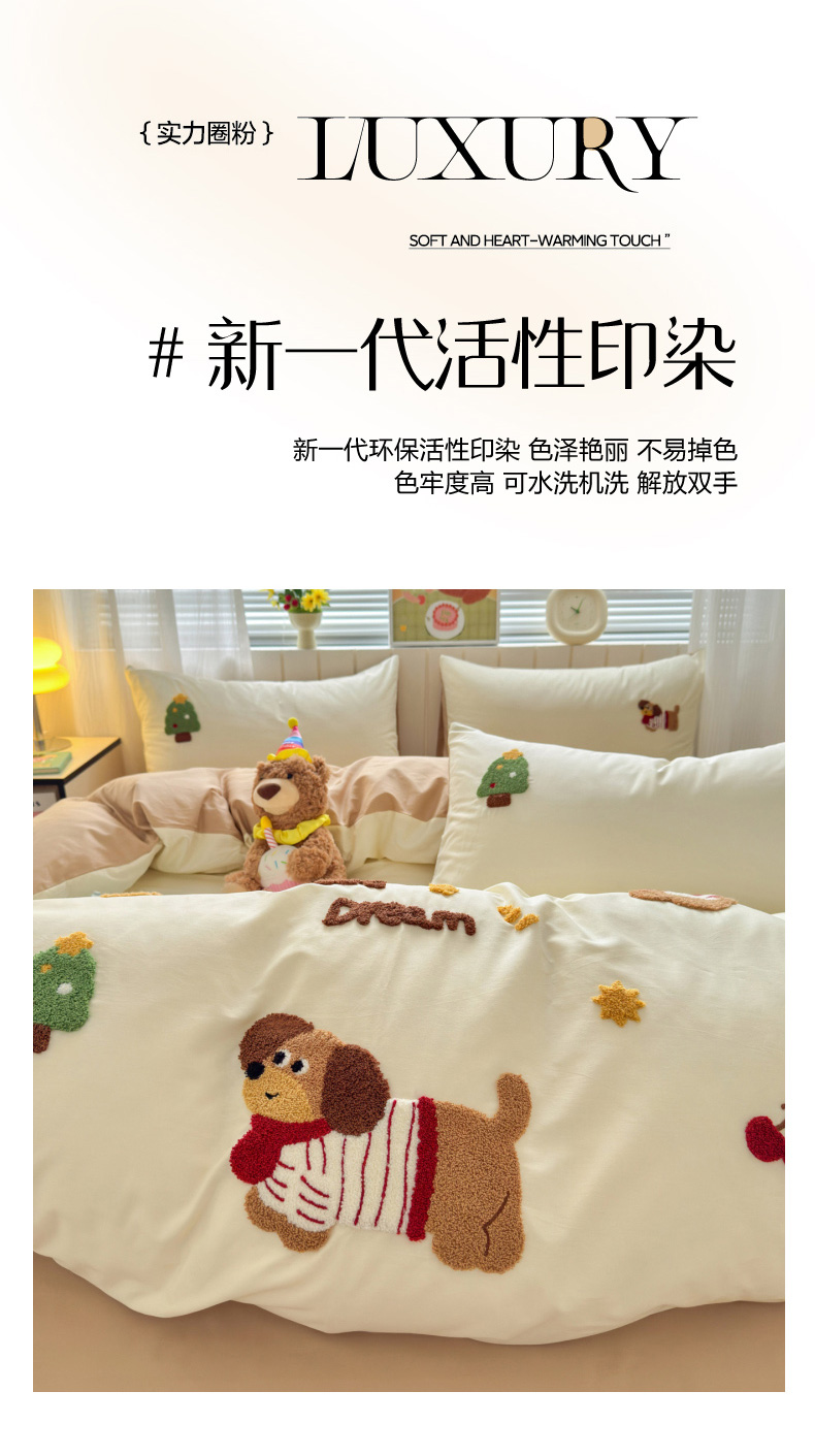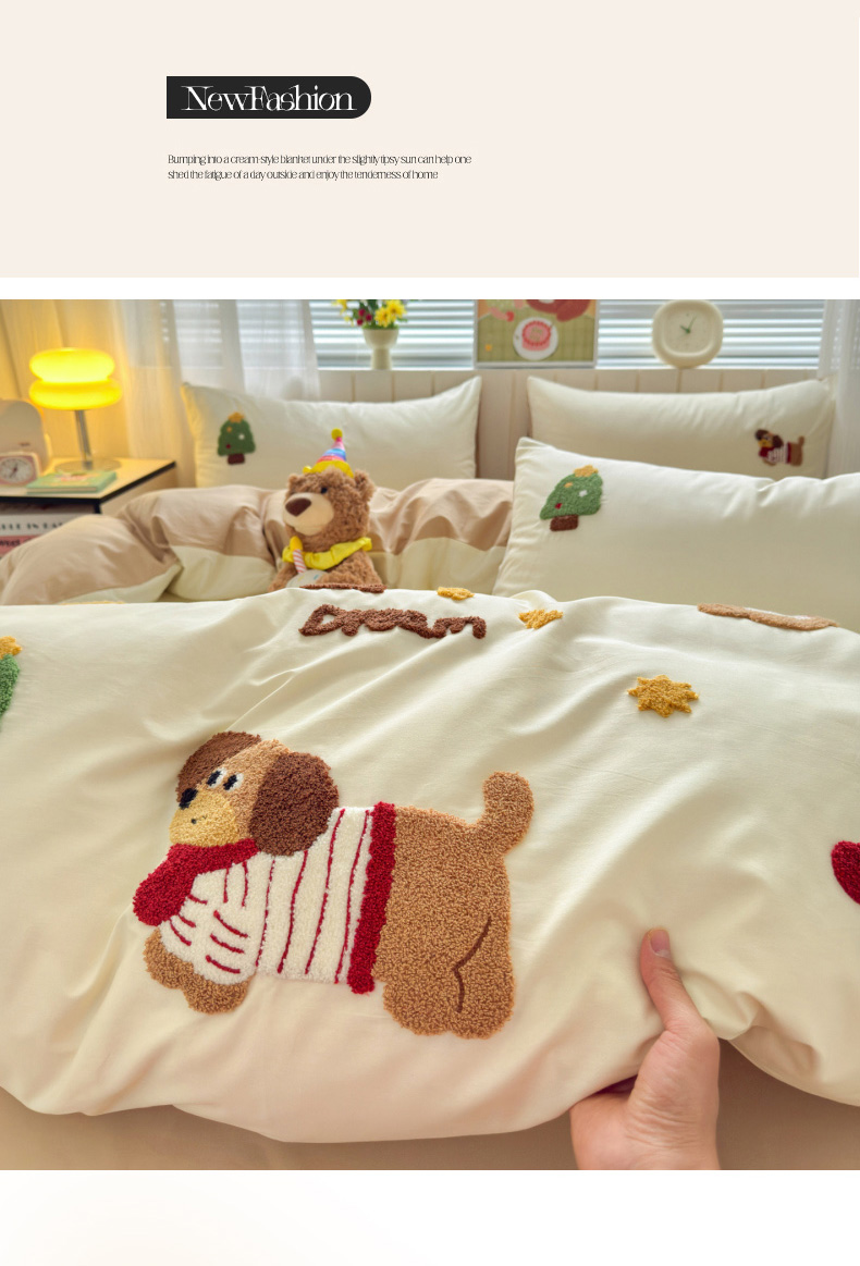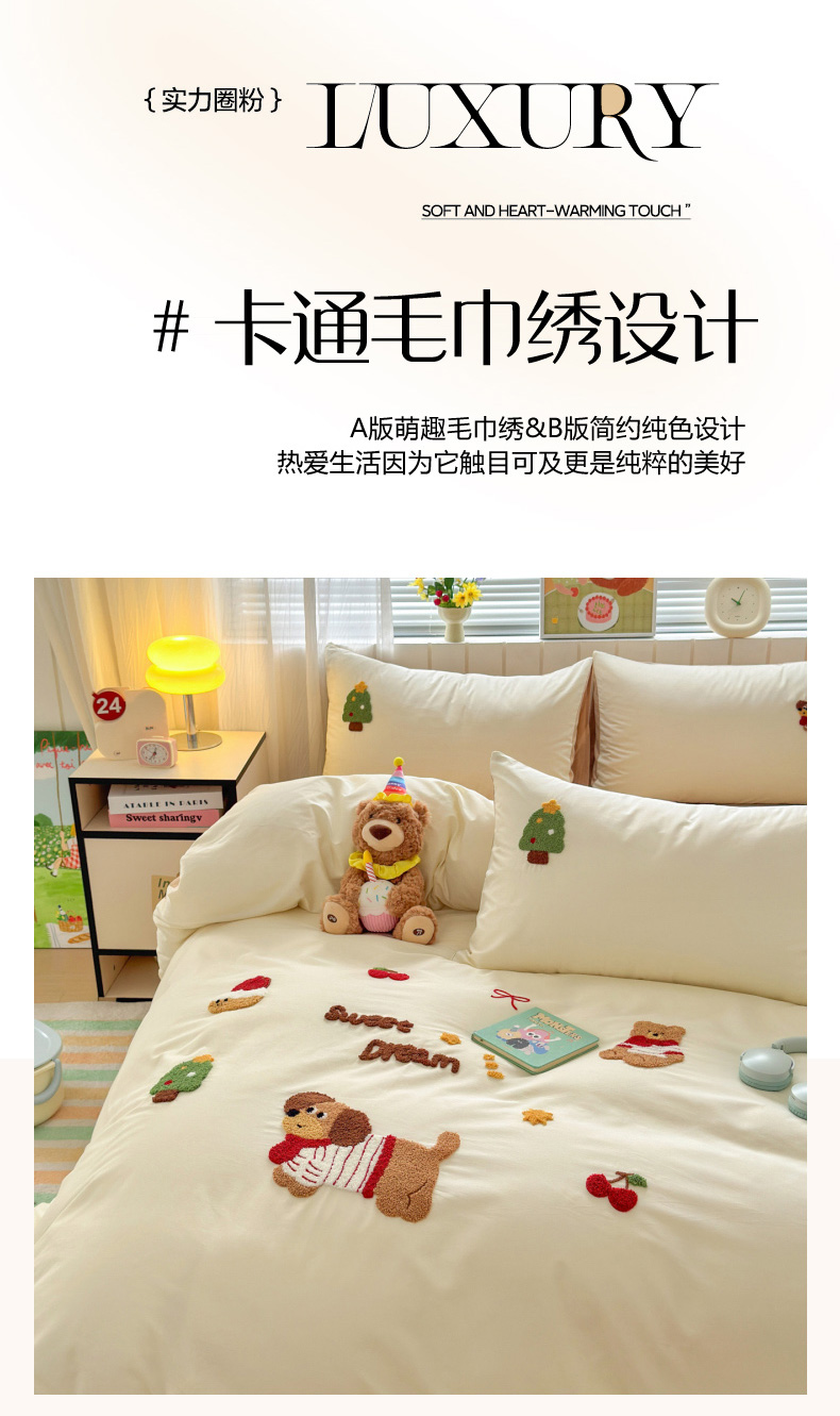 (总)如意朵 2026新款全棉纯棉提花水洗棉绣花四件套(专版花型),开心丫,三只小狗,三只小猫,贪吃卡皮,休闲小猫,抓星熊