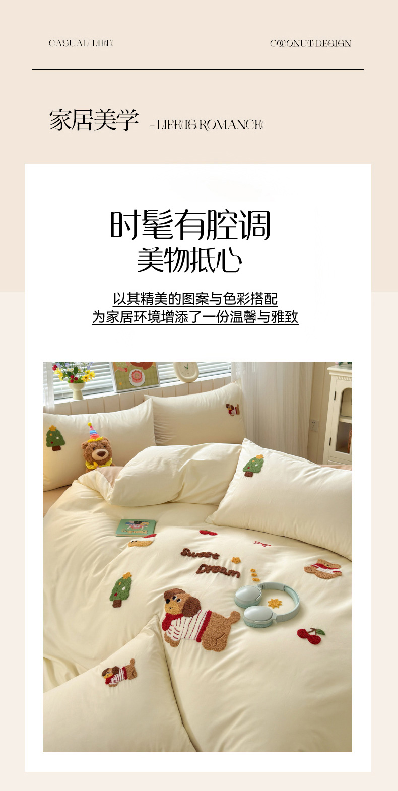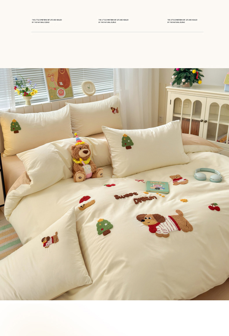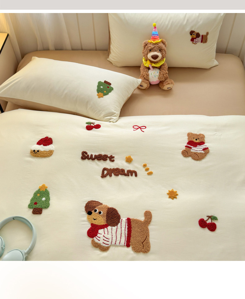 如意朵 2026新款全棉小清新绣花四件套第一批 梦想狗狗