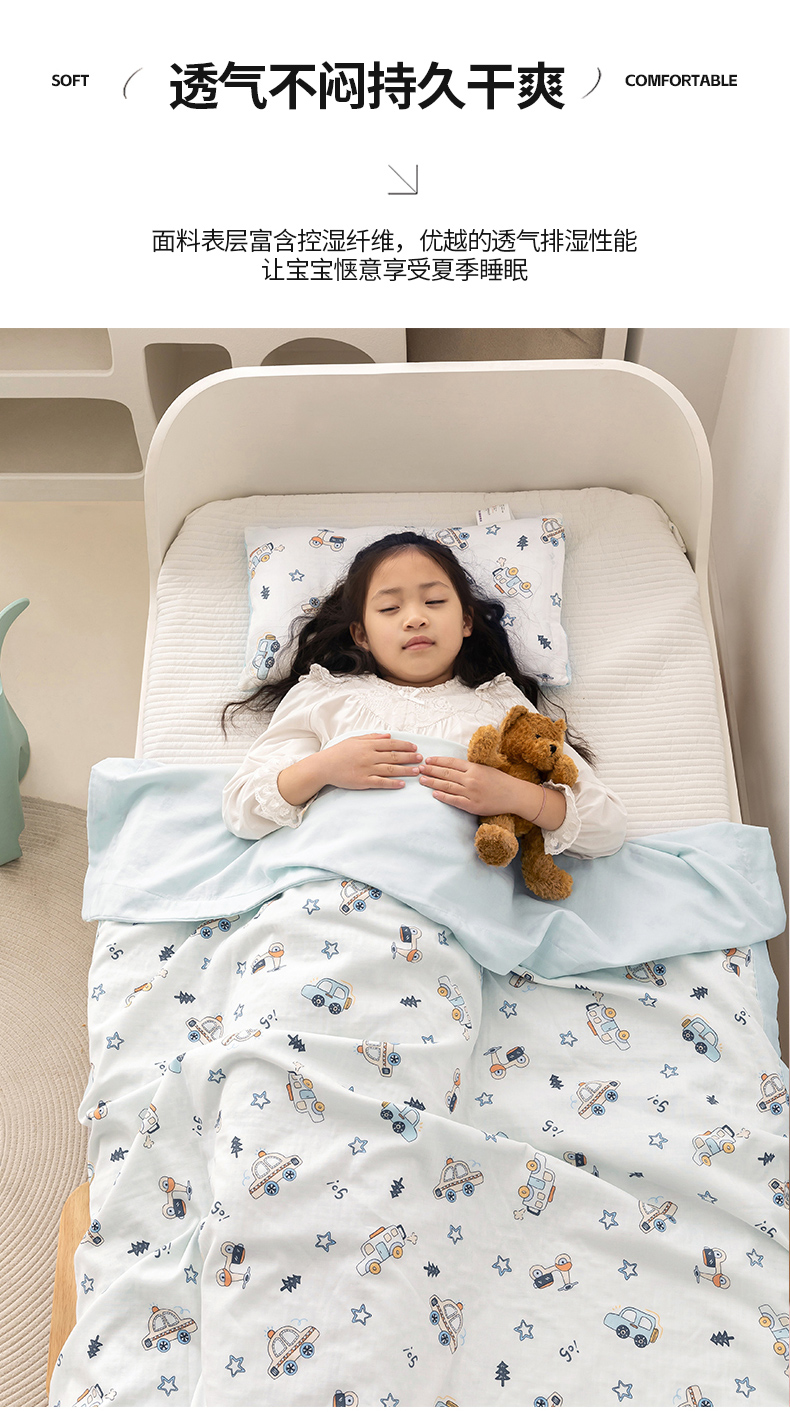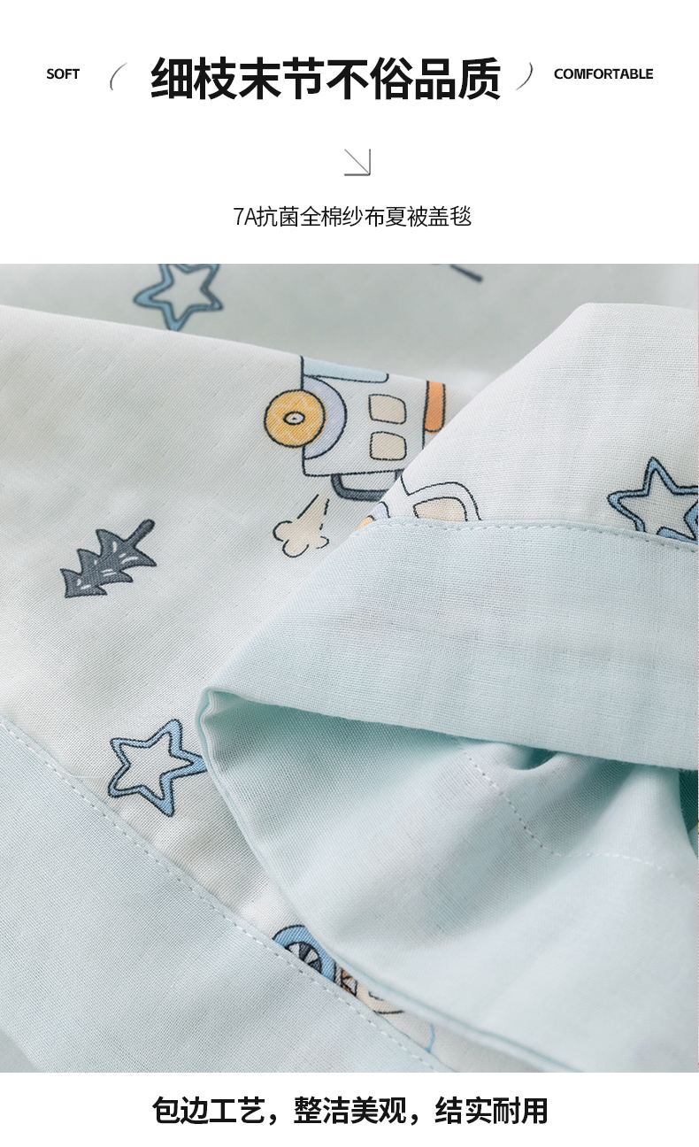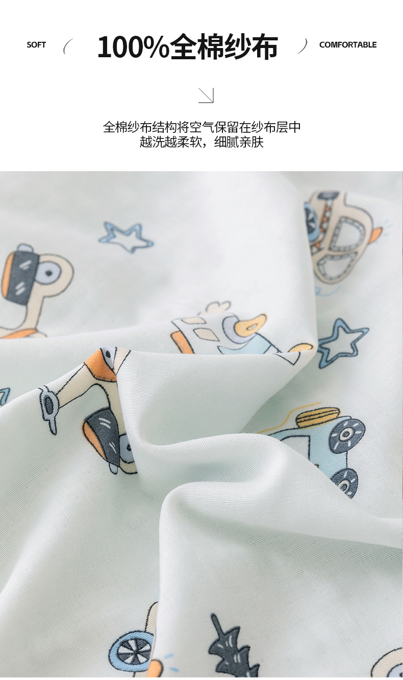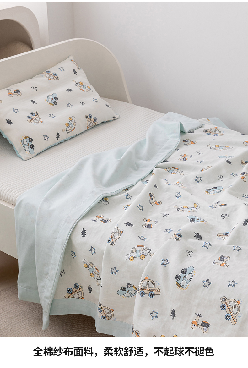 商品名称:嗨生活 2026新款7A抗菌全棉纱布夏被儿童夏被幼儿园夏被夏被毯 汽车乐园