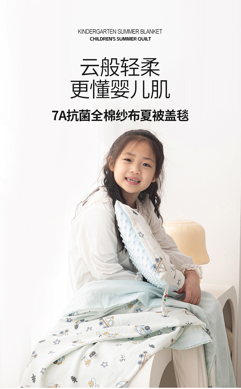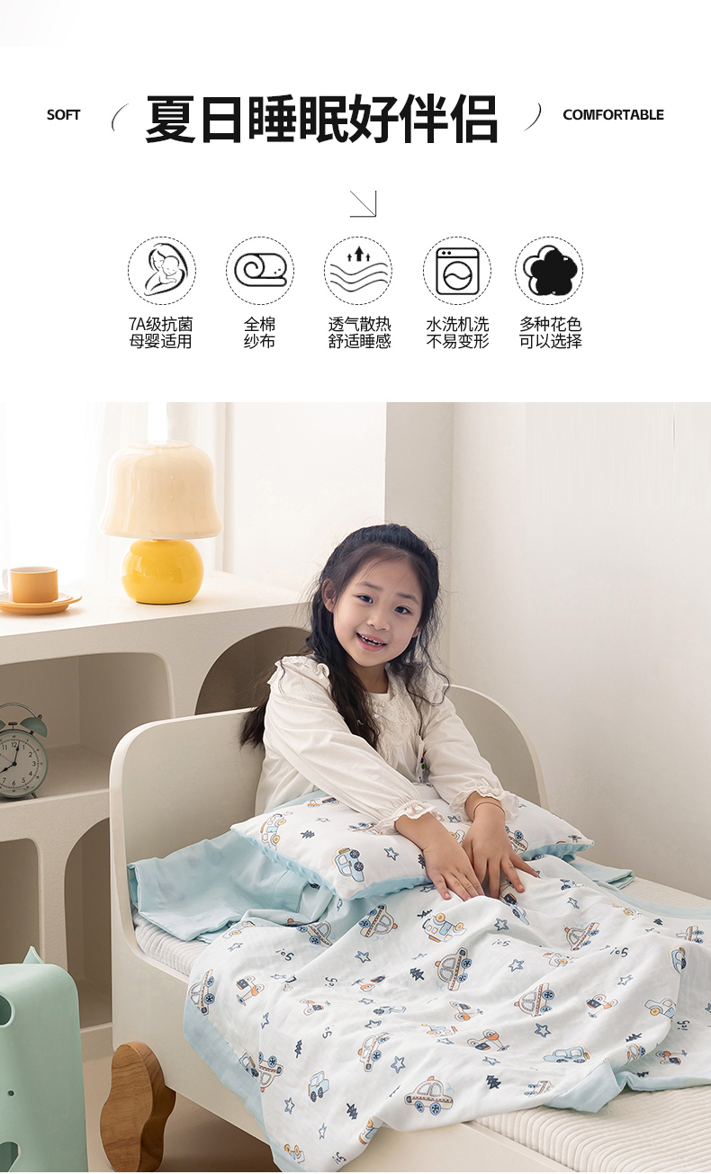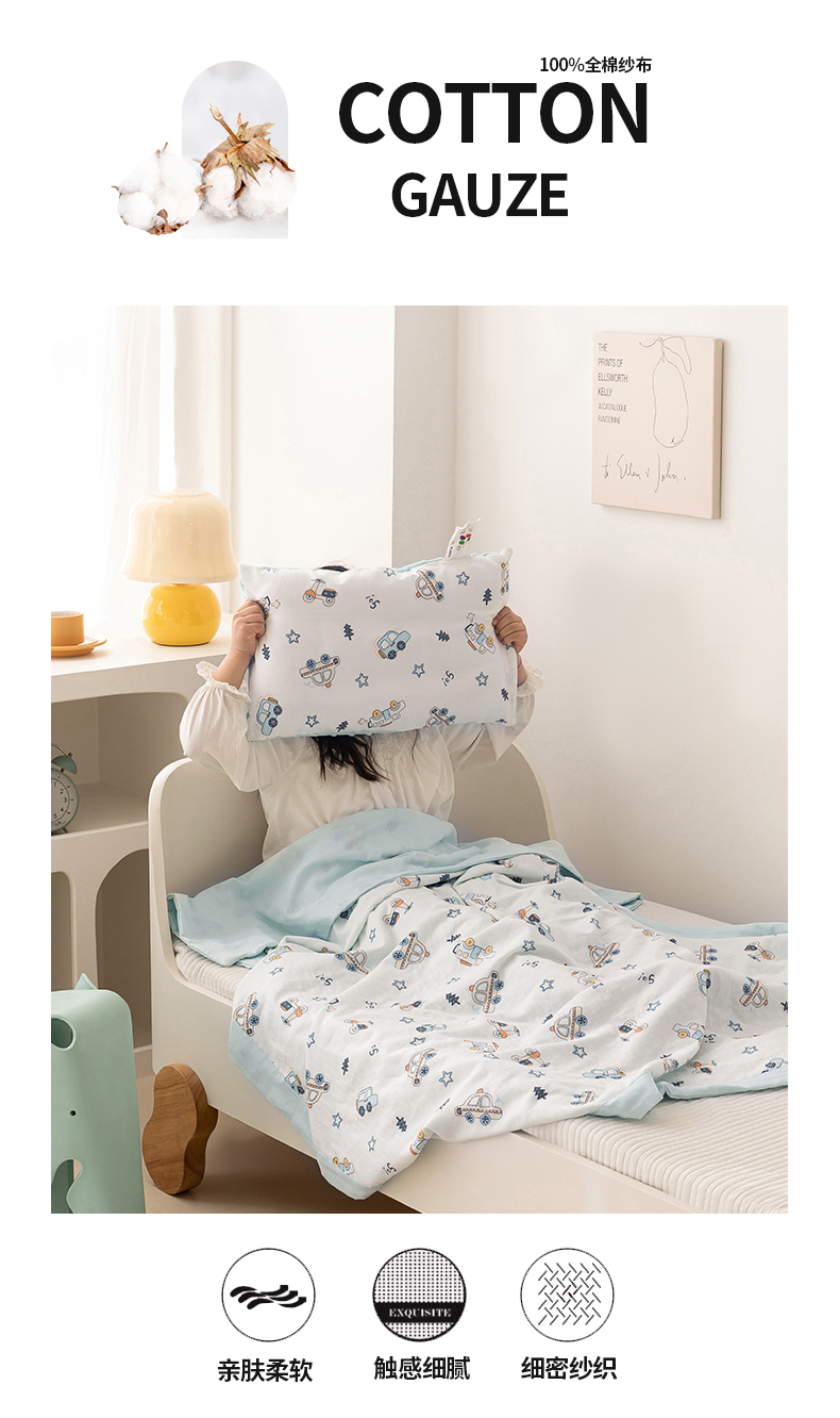 商品名称:嗨生活 2026新款7A抗菌全棉纱布夏被儿童夏被幼儿园夏被夏被毯 汽车乐园
