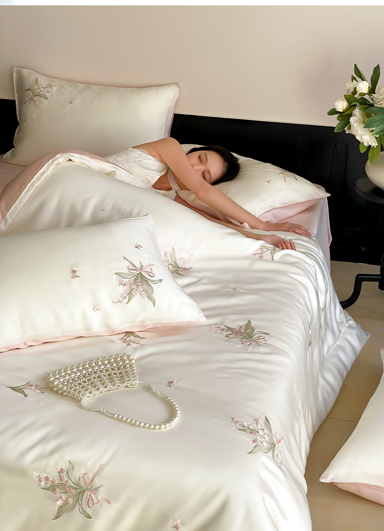 商品名称:云栖家居 2026款60支兰精天丝四件套-小香玲 小香铃-粉
