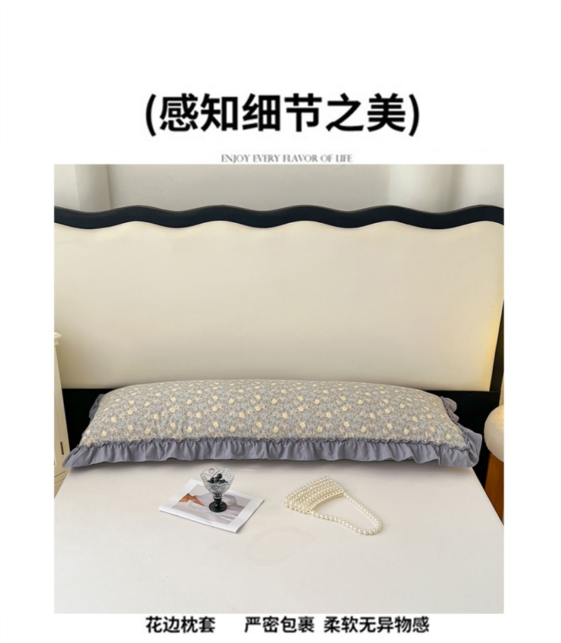 • 91家纺网 家纺一手货源 找家纺 梦舒羽 2026新款A类云朵棉法式压花边枕套加长双人情侣1.8米枕芯内胆套1.5m枕头套 风栖木槿-灰(法式压花边)