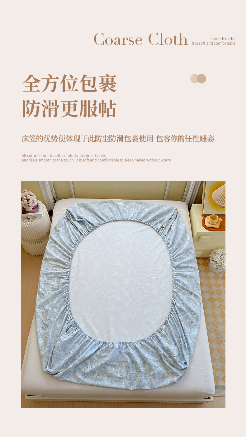 商品名称:春皖家纺 2026新款全棉老粗布工艺款单床笠床笠单件 晨曦-蓝