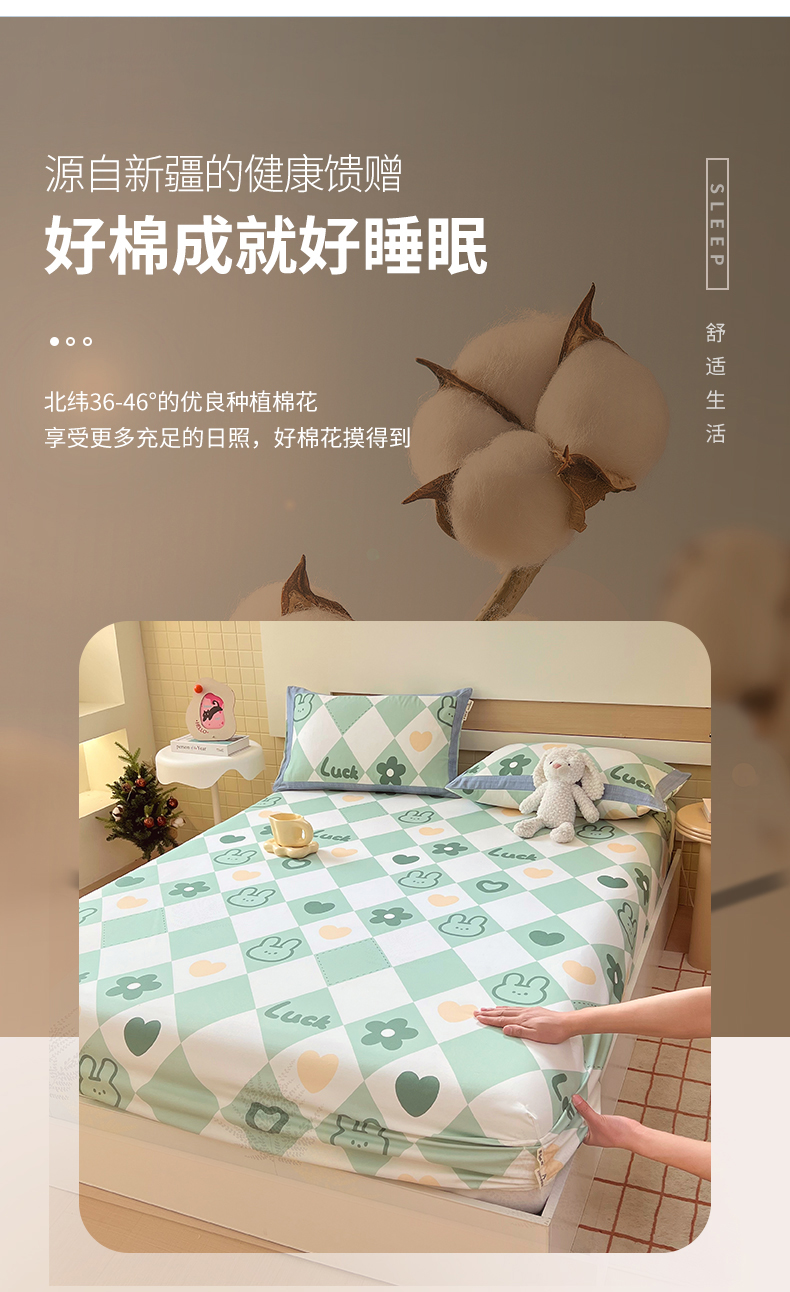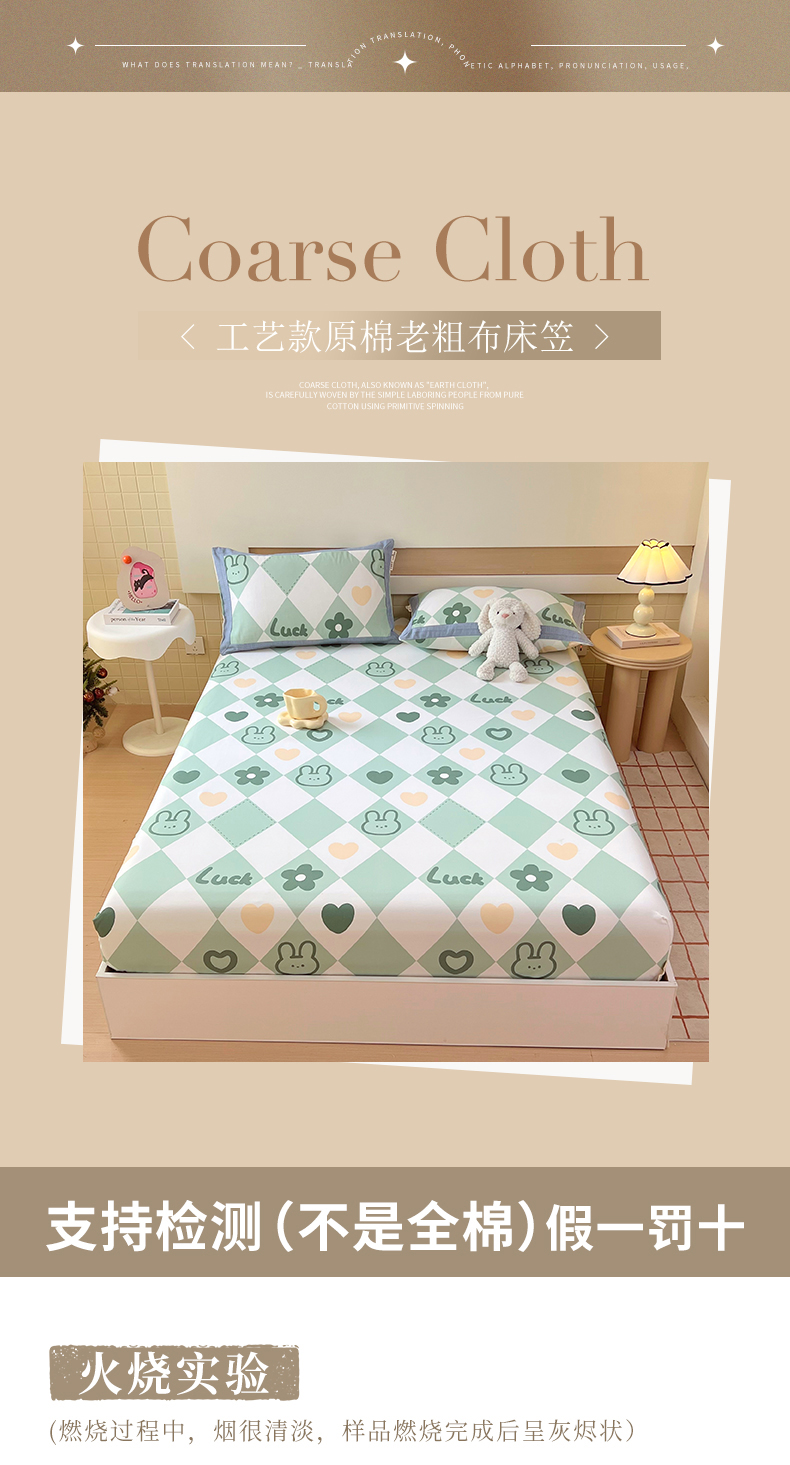 商品名称:春皖家纺 2026新款全棉老粗布工艺款单床笠床笠单件 幸运