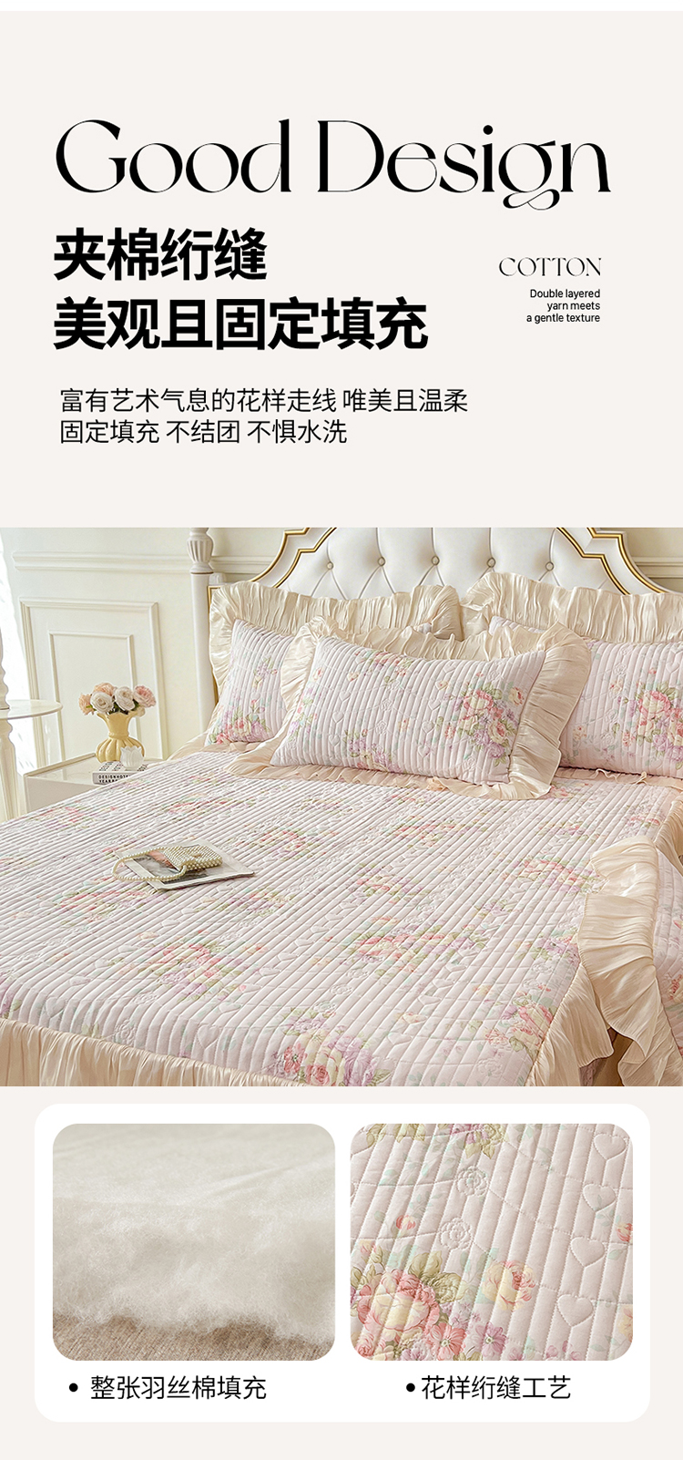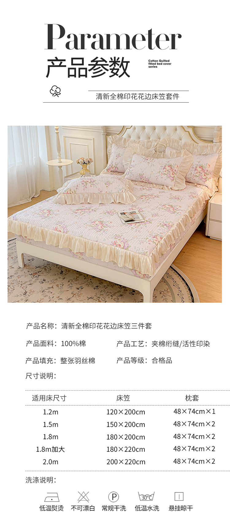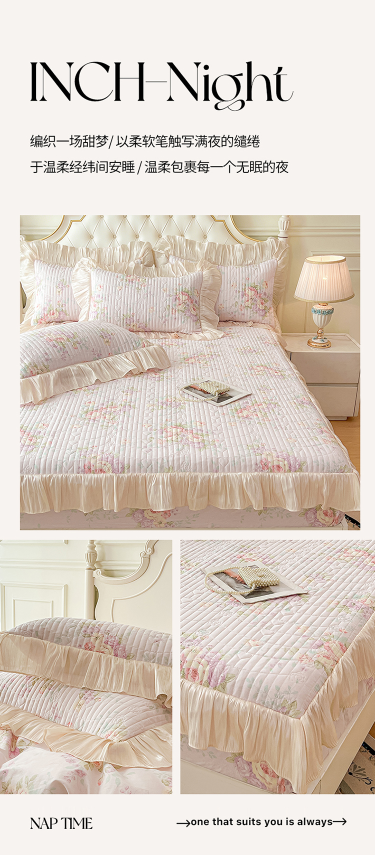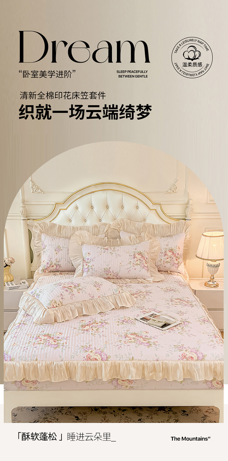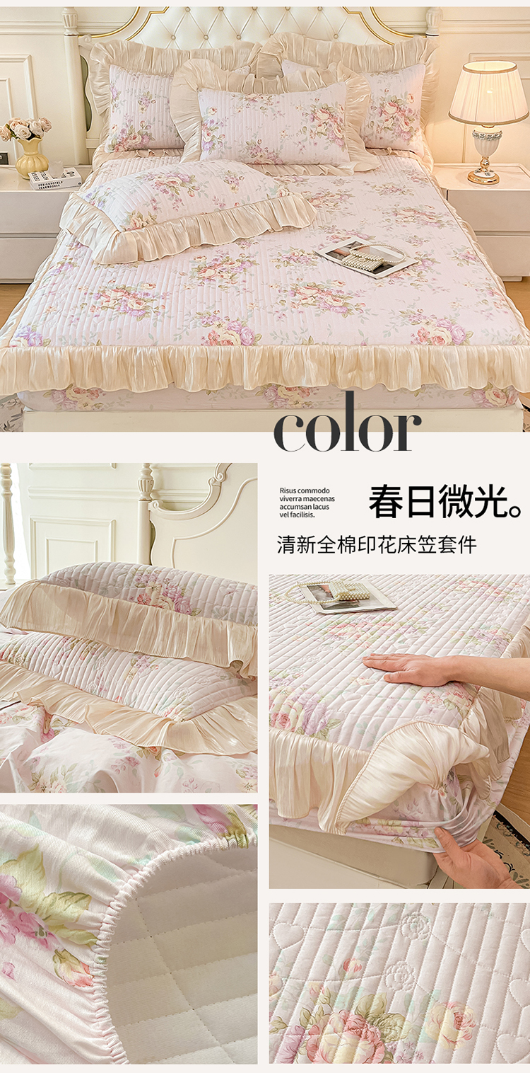 当前位置: 91家纺网 > 商品网购 > 床品套件 > 三件套 > 宜凡家纺 2026新款全棉夹棉公主风床笠三件套 春日微光