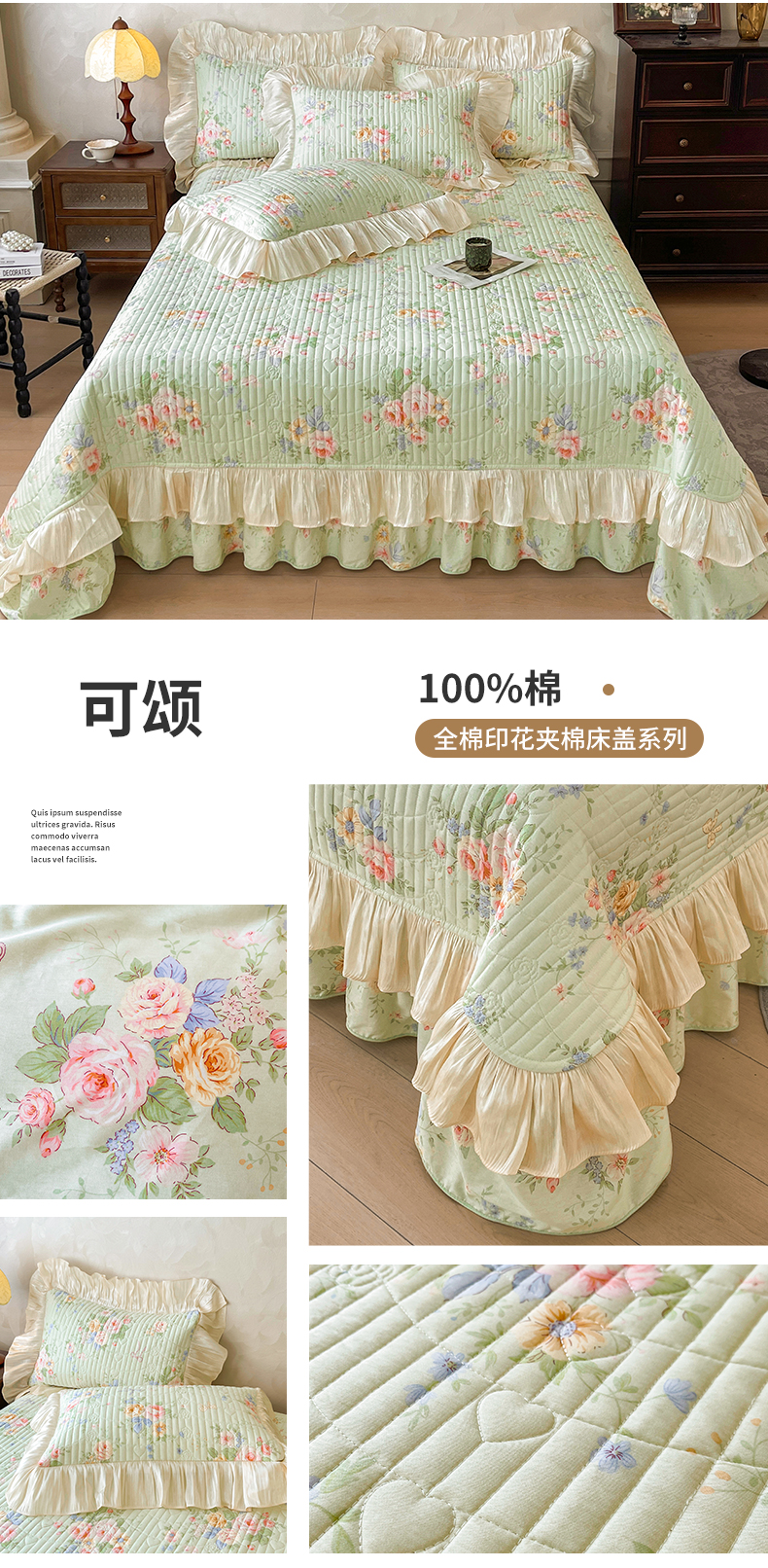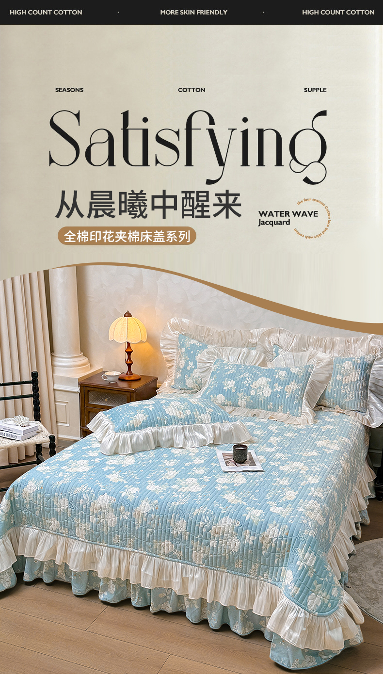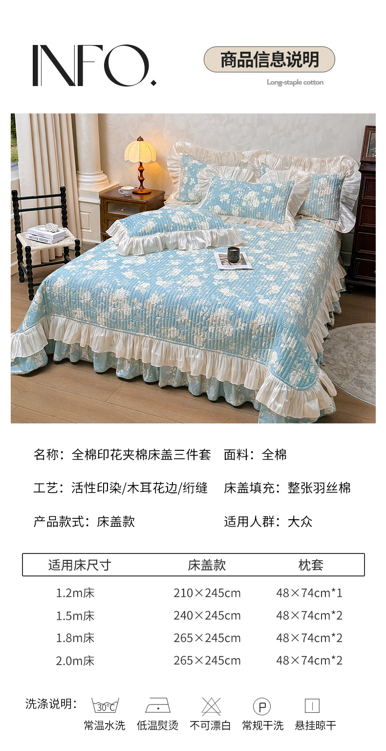 当前位置: 91家纺网 > 商品网购 > 床品套件 > 三件套 > 宜凡家纺 2026新款全棉印花公主风夹棉床盖三件套 乔屿