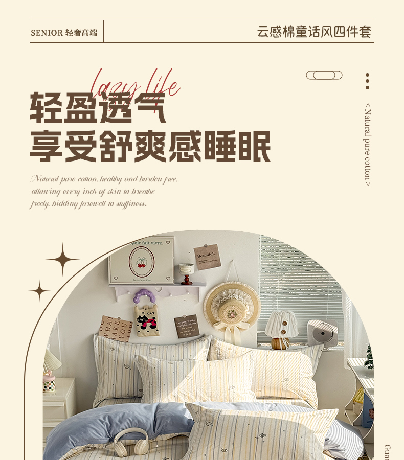 (总)禧缘家纺(原梦想家) 2026新款小清新皱皱纱木棉床裙式床笠印花单被套,彩虹,蝶梦,花田,沐春,南瓜,泡芙,甜筒,童话,兔兔,雾迟,星星,月光