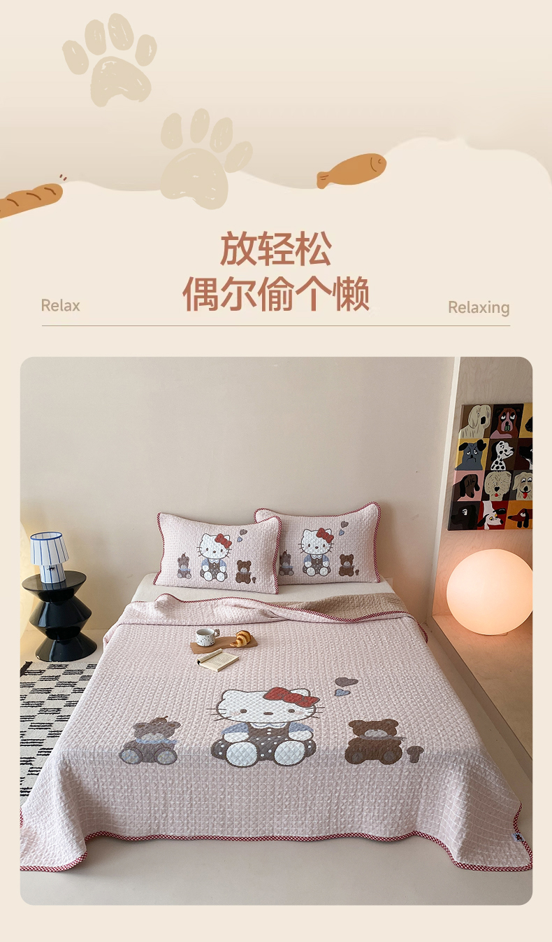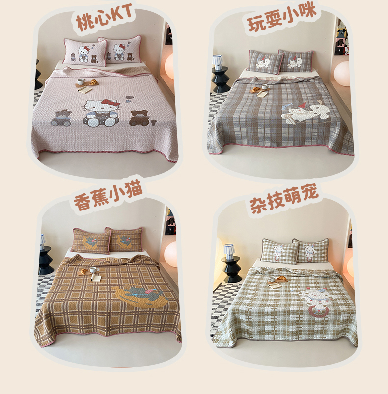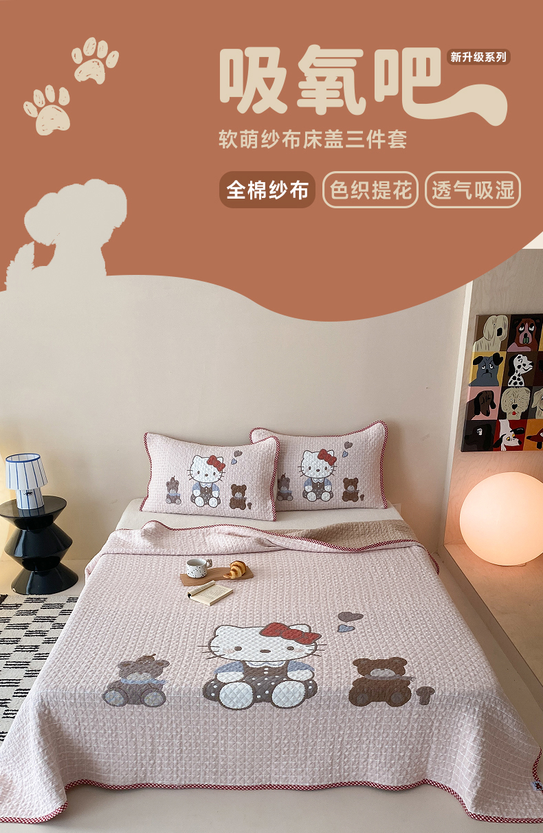 (总)麻依 2025新款安心棉床盖三件全棉四层纱布床单,粉色KT猫,花园小兔,凯蒂的快乐,可爱鸭鸭,可可猫咪-奶茶,可可猫咪-深咖,蓝色熊猫,团团KT,小熊格格,心心领结,欣欣樱桃,雪漫,樱桃兔猫,组合