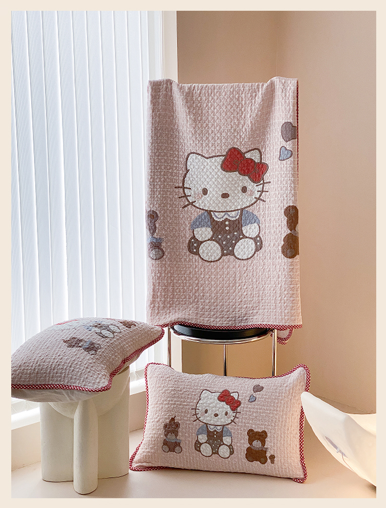 商品名称:麻依 2026新款软萌纱布床盖三件套系列 桃心KT