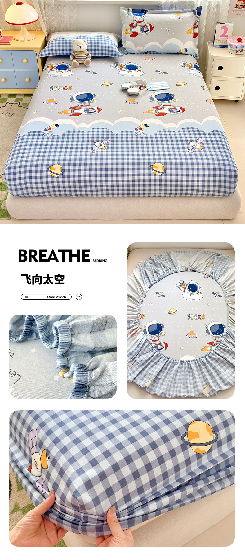 (总)拾物记 2026新款第一批12868A类全棉单品床笠系列(床笠宽度预留10厘米缩水尺寸, 90x200床笠高度15厘米,适合4-15厘米学生床垫使用,其他尺寸床笠高28cm 适合4-28厘米,森林伙伴,挽星河,爱心喵,彩虹兔,草莓小狗,乘风宇宙,刺绣潮声,点点森林熊,粉粉猫咪酱,滚滚绣球团,花漫歌,简笔小汪,镜子海洋粉,开心派对,快乐宇航员,蓝星动物园,美梦花园,咪咕日常,太空卫士,太空熊,糖果幼儿园,糖纸童年,甜蜜纪念日,星际仔仔,星星柯基,星星童话园,元气小布,云间甜梦