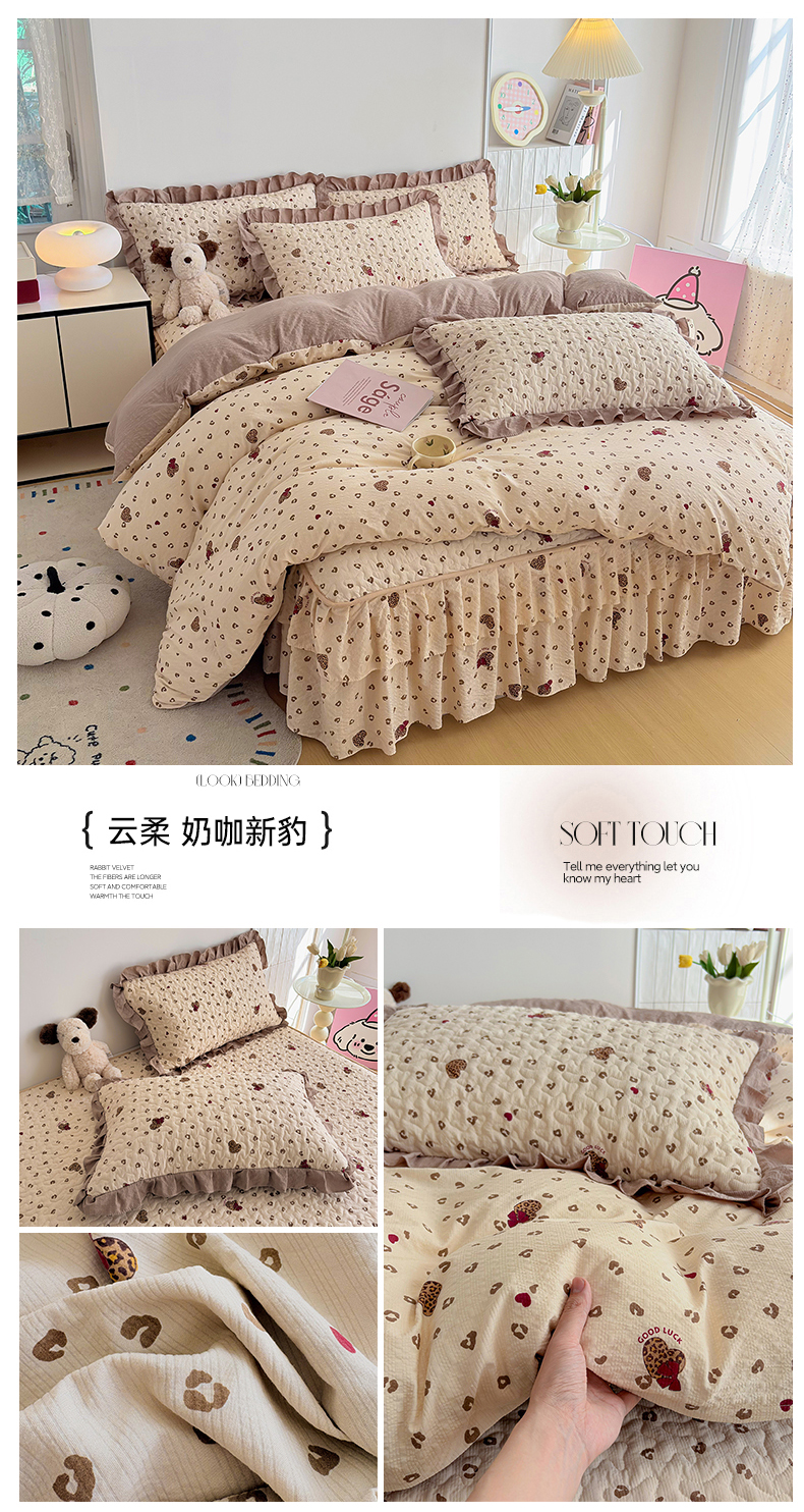 铠畅 2026新款泡芙纱皱皱棉床裙款四件套 云柔 奶咖新豹