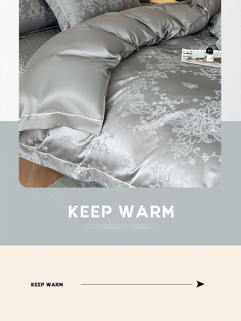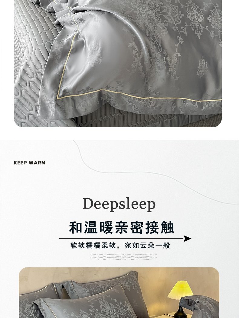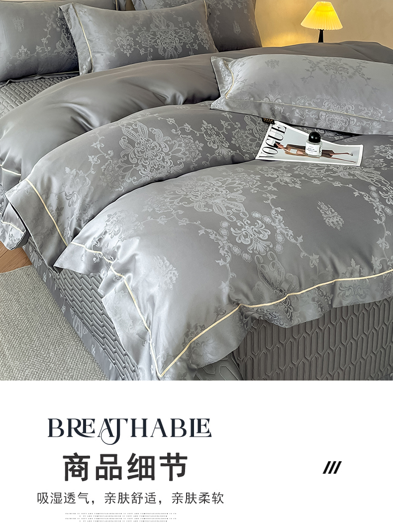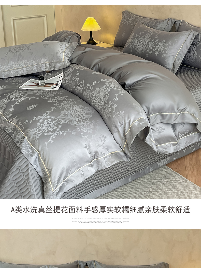 商品名称:大麦家纺 2026新款水洗真丝提花床盖四件套丝韵繁花 丝韵繁花-深灰