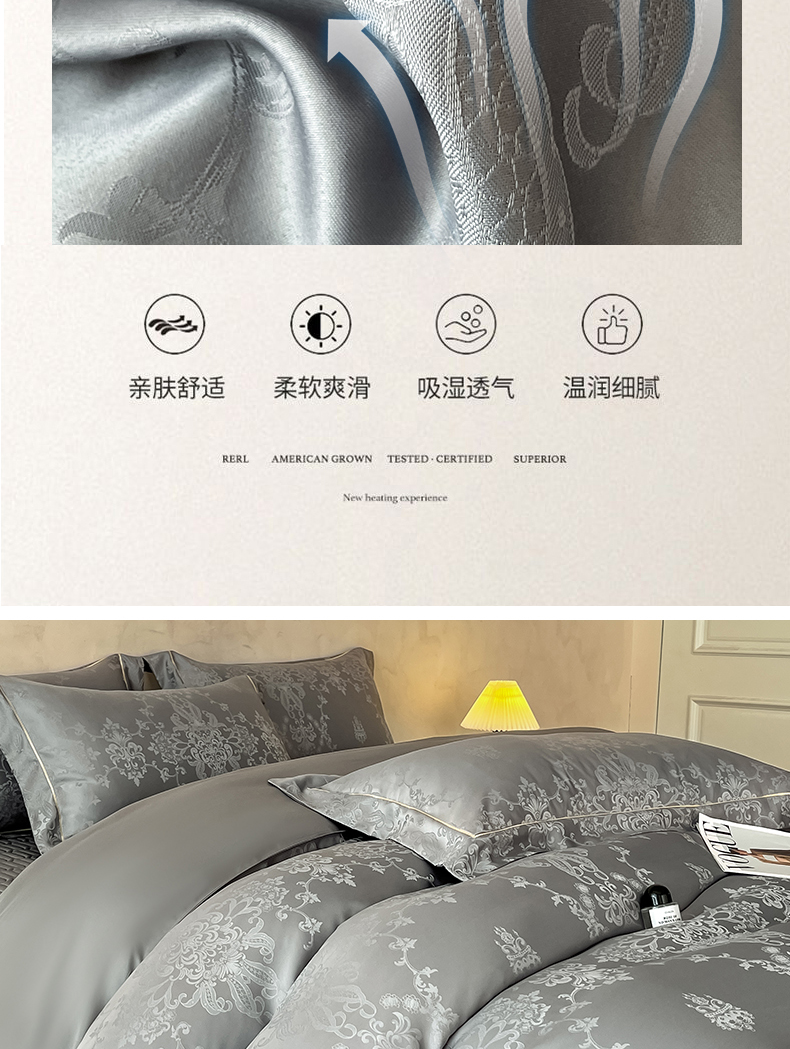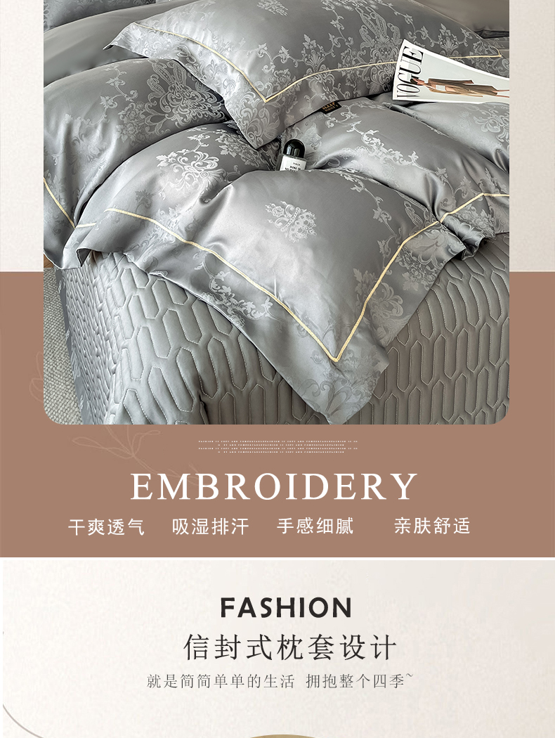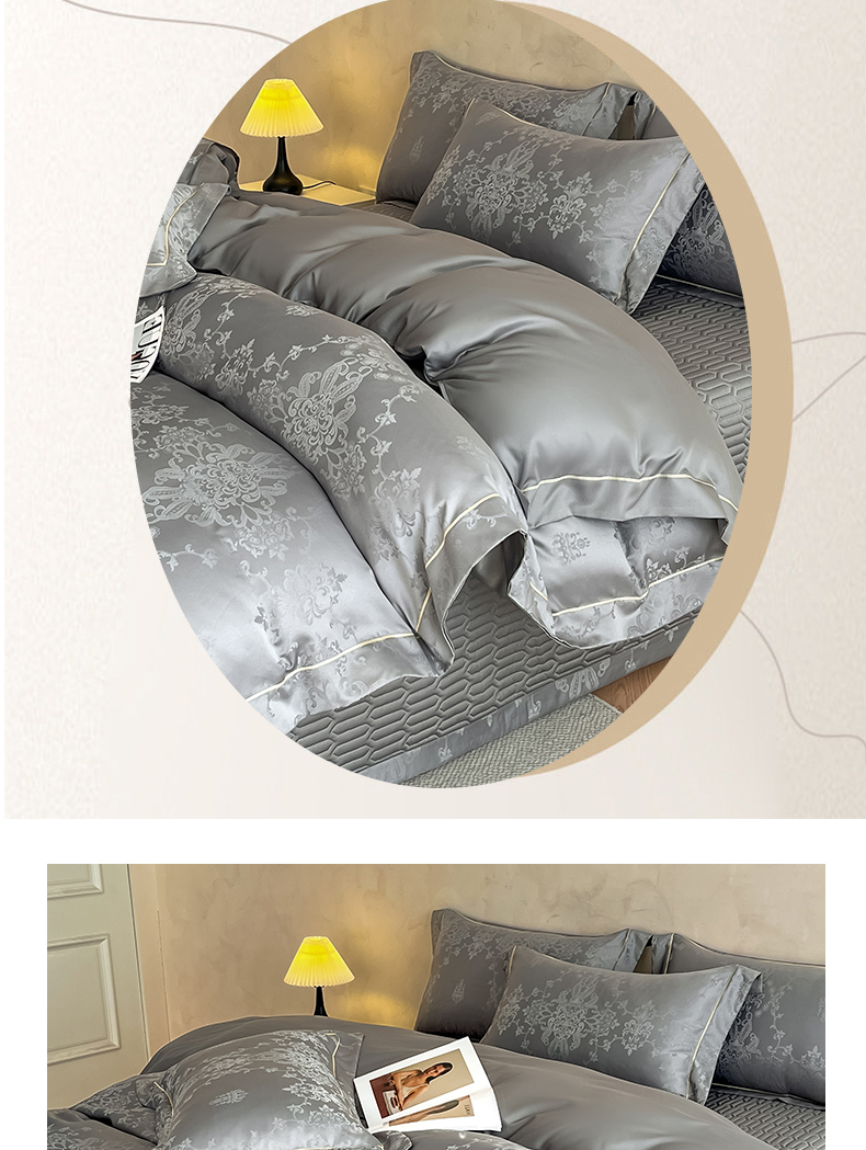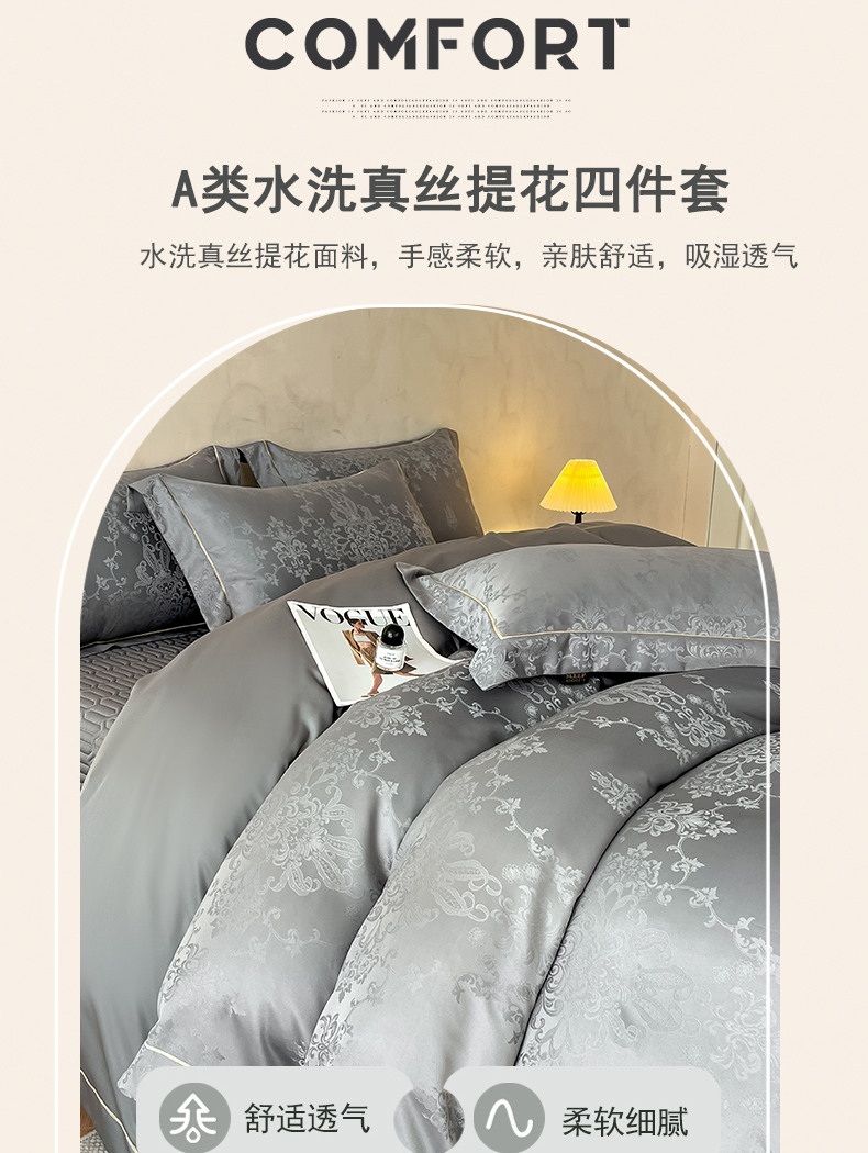 大麦家纺 2026新款水洗真丝提花床盖四件套丝韵繁花 丝韵繁花-深灰