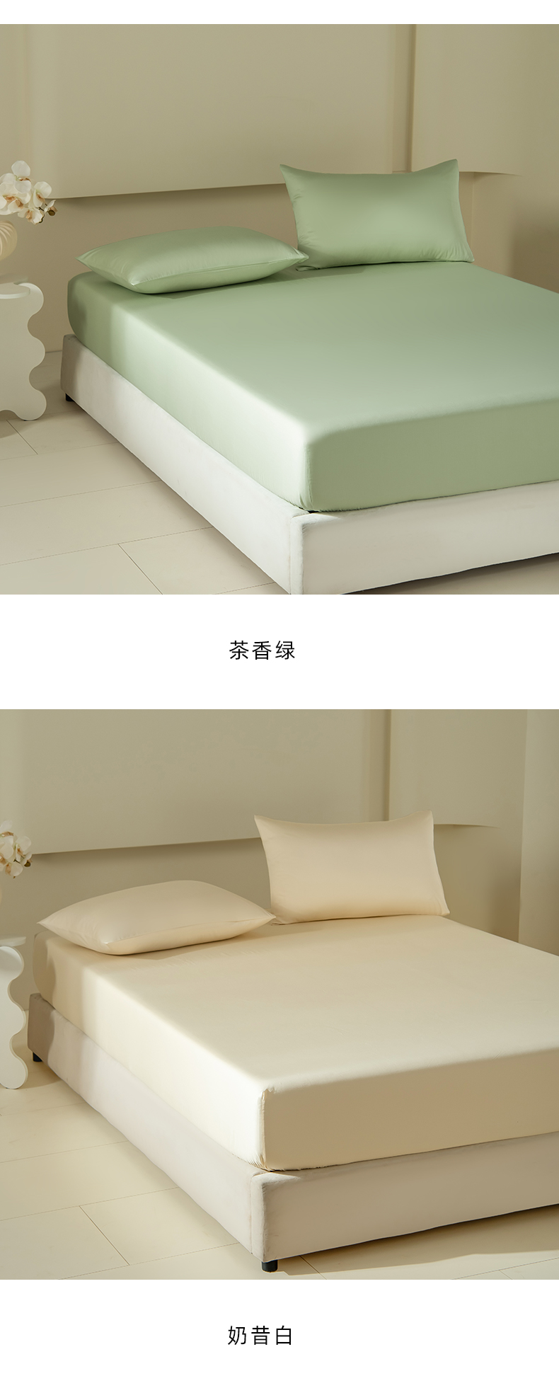 (总)佳汐蓝家纺 2026春夏新款贡缎长绒棉纯棉单床笠 床笠单件,组合图仅供展示不可下单,白桃茶粉,茶香绿,蒂芙尼蓝,奶昔白,藕灰,浅香槟,清澈蓝,清新粉,绅士灰