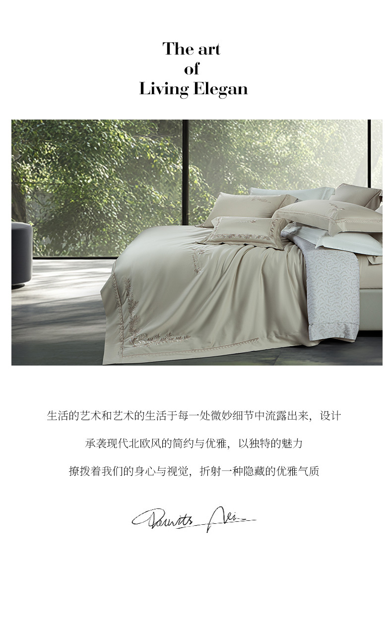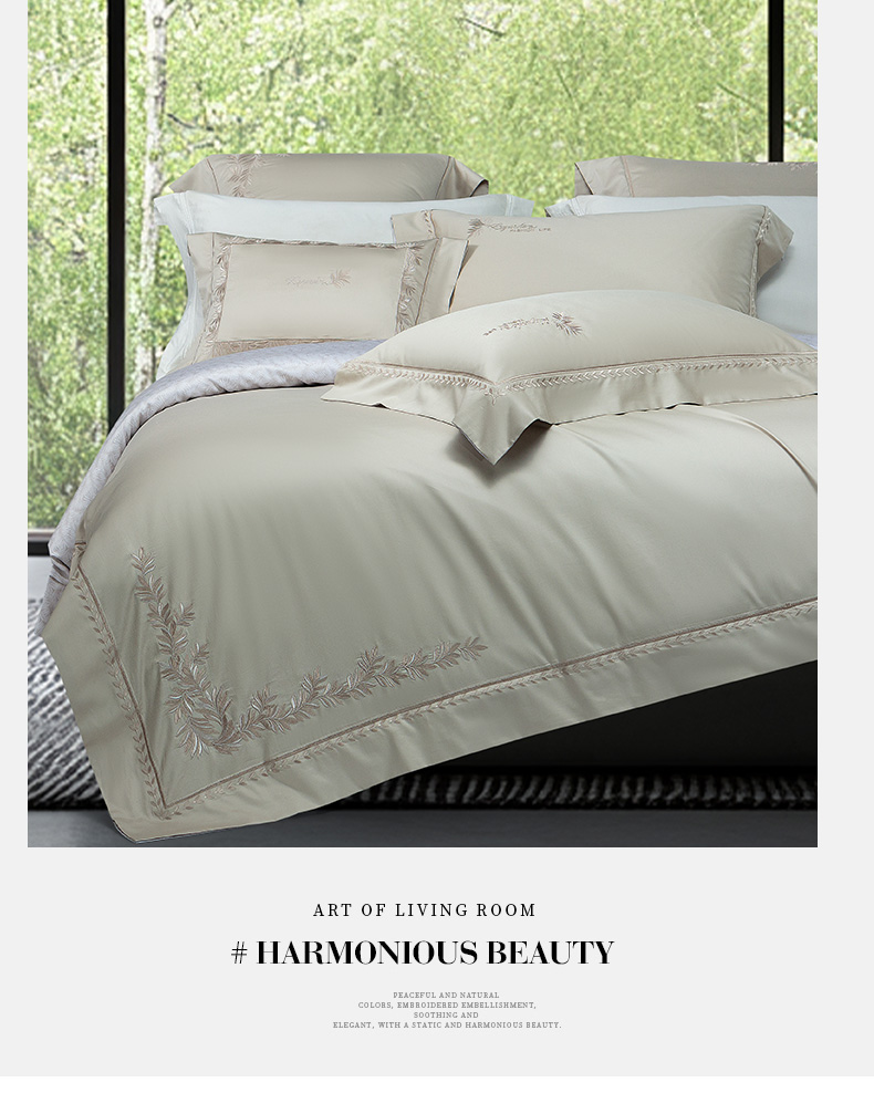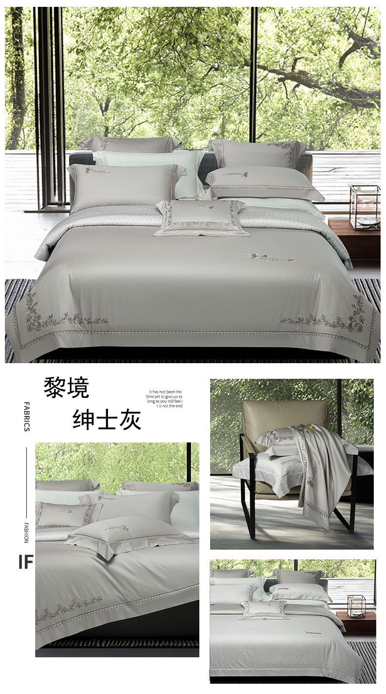 (总)诗黛尔 2026春夏新款长绒棉刺绣四件套黎境系列,黎境-香槟金,黎境-极光蓝,黎境-卡其色,黎境-落樱粉,黎境-绅士灰